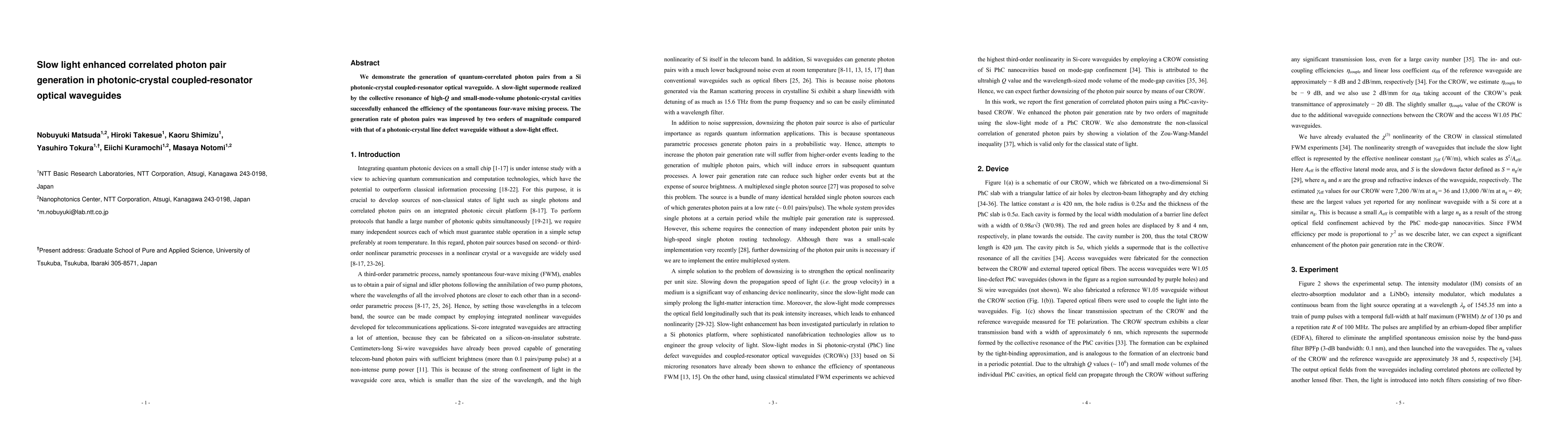 The paper presents a novel approach to enhance photon pair generation using slow-light supermodes in photonic-crystal coupled-resonator optical waveguides.