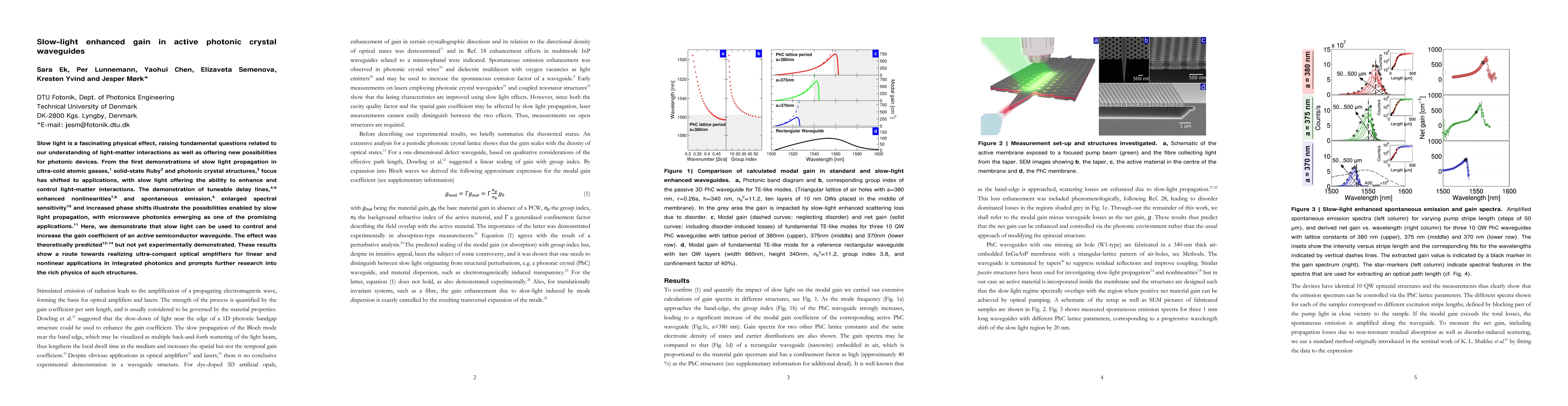 This paper demonstrates the use of slow light to enhance the gain coefficient in active semiconductor waveguides, a theoretical prediction now experimentally confirmed. The findings suggest a pathway to developing ultra-compact optical amplifiers for integrated photonics, highlighting the potential of slow light in advanced photonic devices.