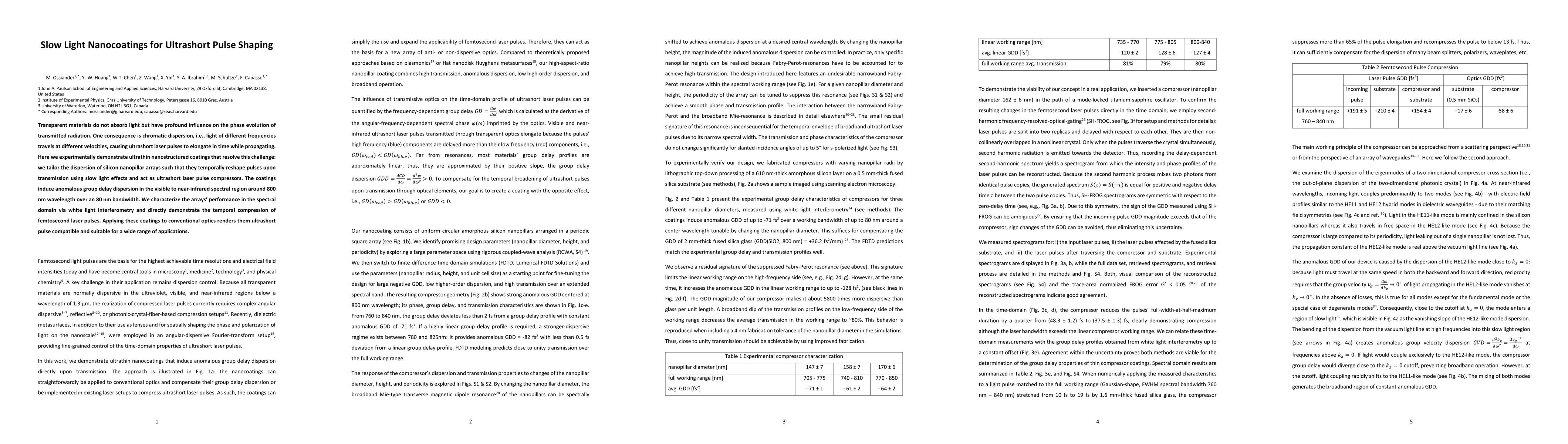 Researchers developed ultrathin nanostructured coatings that compress ultrashort laser pulses by manipulating light dispersion, enabling the use of conventional optics for ultrafast applications.