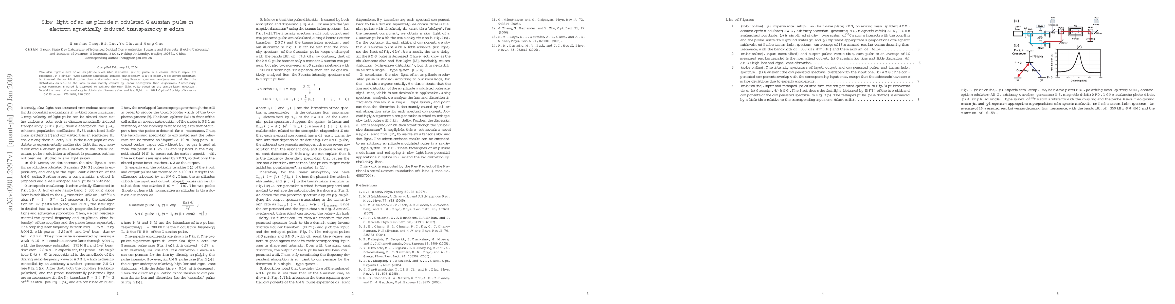 This paper investigates the slow light effects of amplitude modulated Gaussian pulses in a cesium atomic vapor within an electromagnetically induced transparency medium, revealing more severe distortion compared to Gaussian pulses. The study proposes a compensation method based on the transmission spectrum to reshape the pulse and discovers a method for obtaining both slow and fast light simultaneously.