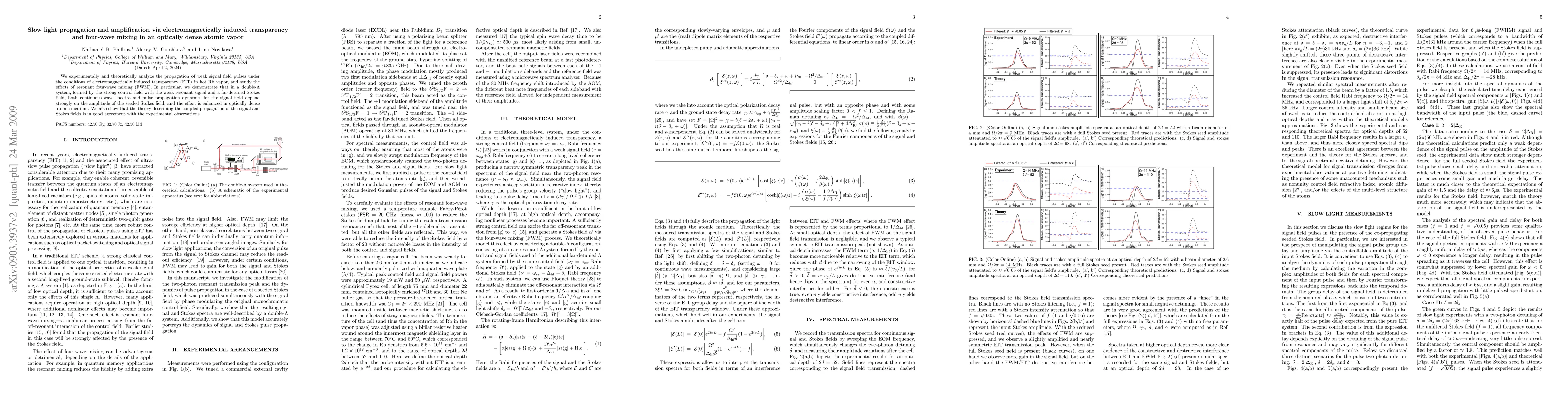 This paper explores slow light propagation and amplification in Rb vapor using electromagnetically induced transparency (EIT) and four-wave mixing (FWM). The study shows that the signal field's dynamics are significantly influenced by the amplitude of the seeded Stokes field, with enhanced effects in optically dense atomic media, and confirms the theoretical model's accuracy with experimental results.