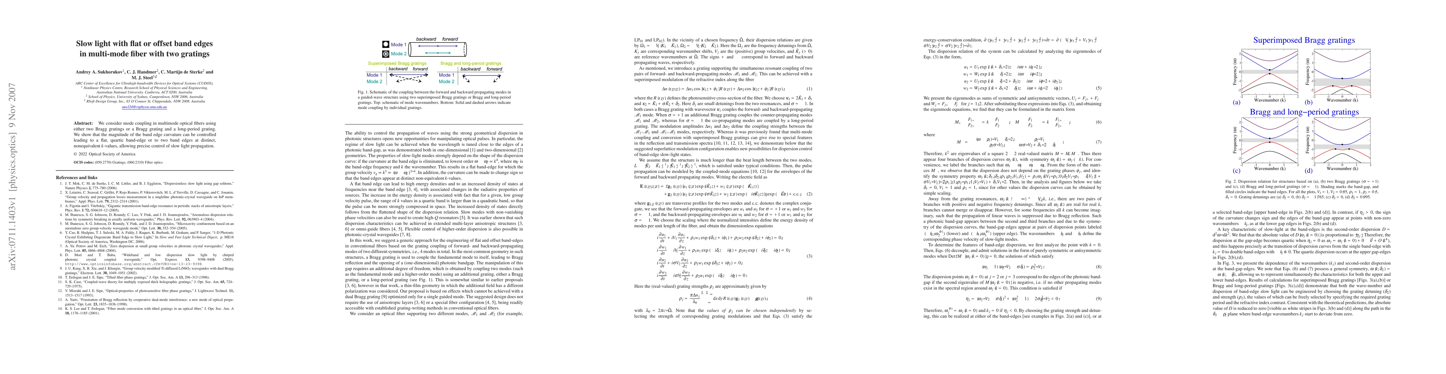 We consider mode coupling in multimode optical fibers using either two Bragg gratings or a Bragg grating and a long-period grating. We show that the magnitude of the band edge curvature can be controlled leading to a flat, quartic band-edge or to two band edges at distinct, nonequivalent $k$-values, allowing precise control of slow light propagation.