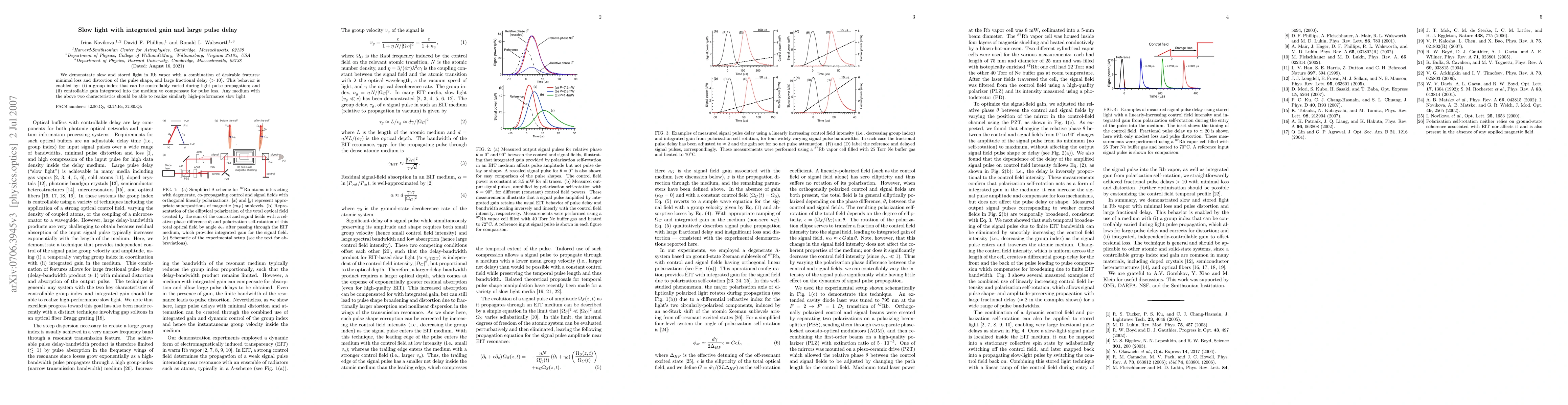 This paper demonstrates slow light with integrated gain in Rb vapor, achieving minimal pulse distortion and large delay (> 10) through controllable group index and integrated gain to compensate for losses. Such high-performance slow light is feasible in any medium with these two characteristics.