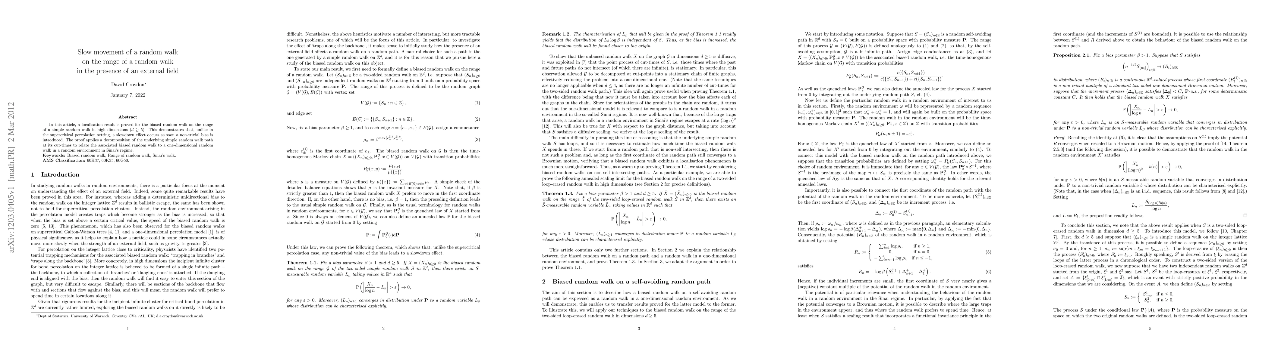 In this article, a localisation result is proved for the biased random walk on the range of a simple random walk in high dimensions (d \geq 5). This demonstrates that, unlike in the supercritical percolation setting, a slowdown effect occurs as soon a non-trivial bias is introduced. The proof applies a decomposition of the underlying simple random walk path at its cut-times to relate the associated biased random walk to a one-dimensional random walk in a random environment in Sinai's regime.