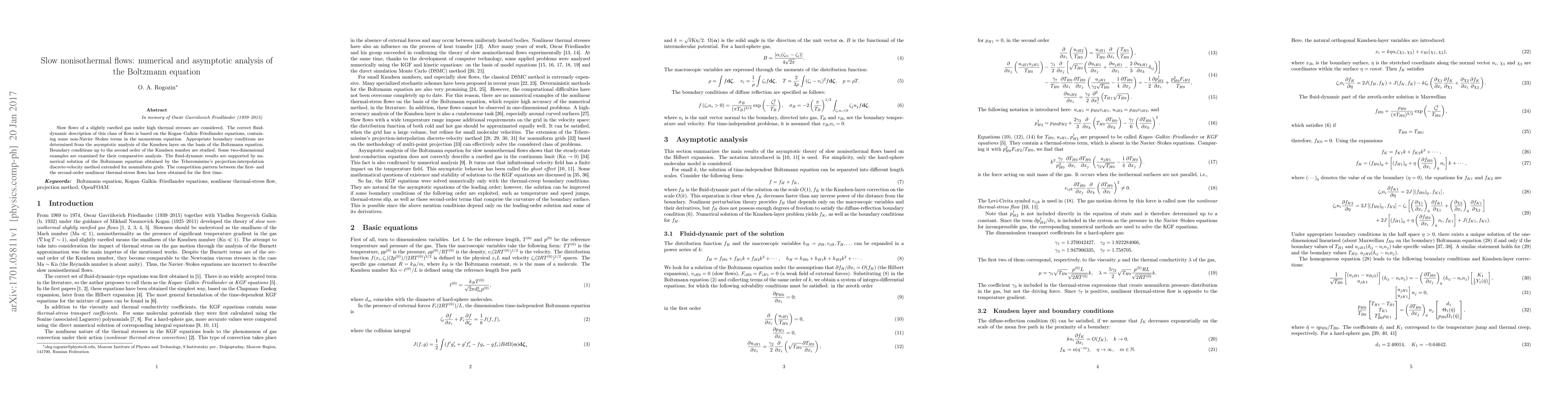 Slow flows of a slightly rarefied gas under high thermal stresses are considered. The correct fluid-dynamic description of this class of flows is based on the Kogan--Galkin--Friedlander equations, containing some non-Navier--Stokes terms in the momentum equation. Appropriate boundary conditions are determined from the asymptotic analysis of the Knudsen layer on the basis of the Boltzmann equation. Boundary conditions up to the second order of the Knudsen number are studied. Some two-dimensional examples are examined for their comparative analysis. The fluid-dynamic results are supported by numerical solution of the Boltzmann equation obtained by the Tcheremissine's projection-interpolation discrete-velocity method extended for nonuniform grids. The competition pattern between the first- and the second-order nonlinear thermal-stress flows has been obtained for the first time.