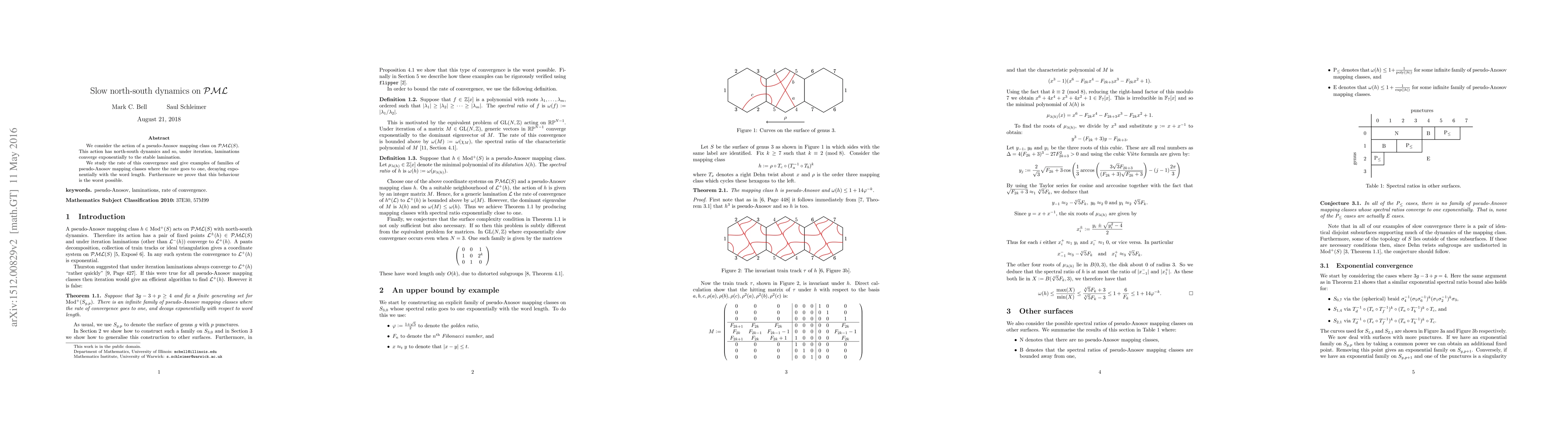 This research paper studies how pseudo-Anosov mapping classes on a surface affect laminations, finding that they converge exponentially to a stable lamination with a rate that can decay to one as the word length increases.