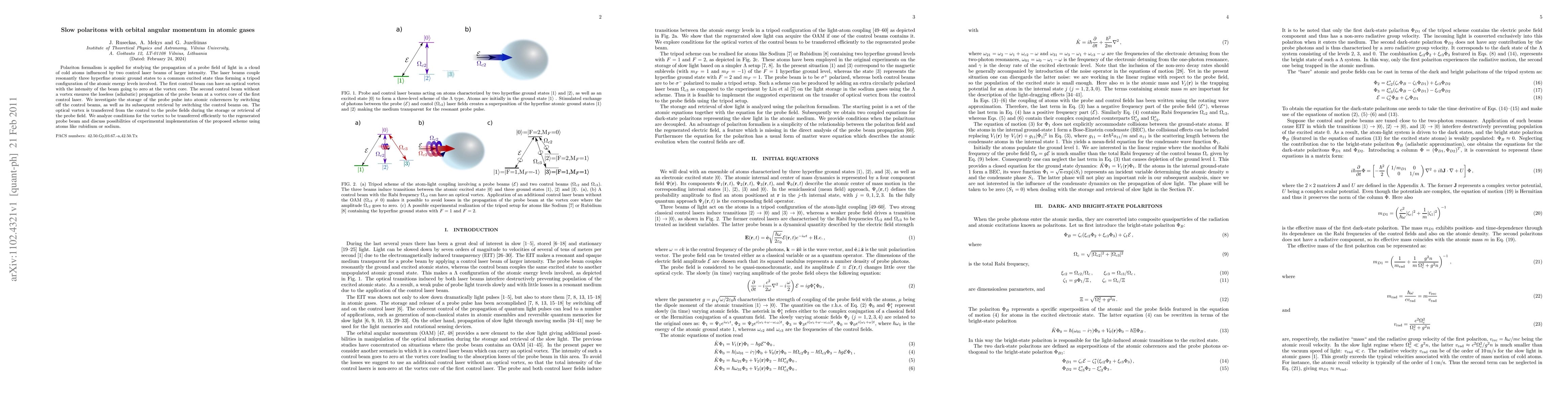 Polariton formalism is applied for studying the propagation of a probe field of light in a cloud of cold atoms influenced by two control laser beams of larger intensity. The laser beams couple resonantly three hyperfine atomic ground states to a common excited state thus forming a tripod configuration of the atomic energy levels involved. The first control beam can have an optical vortex with the intensity of the beam going to zero at the vortex core. The second control beam without a vortex ensures the loseless (adiabatic) propagation of the probe beam at a vortex core of the first control laser. We investigate the storage of the probe pulse into atomic coherences by switching off the control beams, as well as its subsequent retrieval by switching the control beams on. The optical vortex is transferred from the control to the probe fields during the storage or retrieval of the probe field. We analyze conditions for the vortex to be transferred efficiently to the regenerated probe beam and discuss possibilities of experimental implementation of the proposed scheme using atoms like rubidium or sodium.