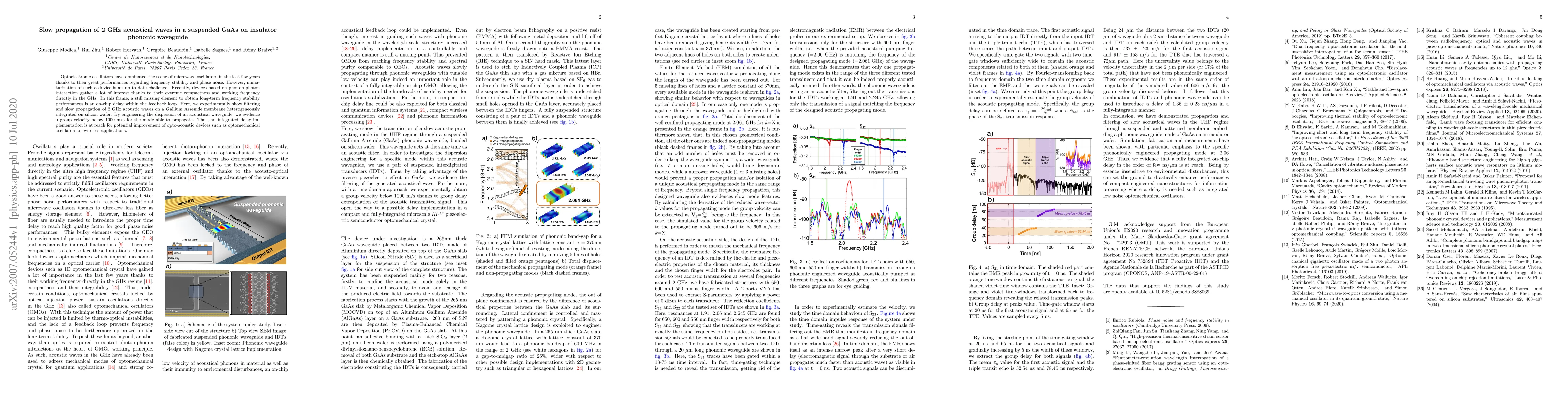 This research demonstrates the experimental slow propagation of 2 GHz acoustic waves in a GaAs membrane integrated on a silicon wafer, achieving a group velocity below 1000 m/s. This breakthrough could enable on-chip delay elements for compact opto-acoustic devices and wireless applications.