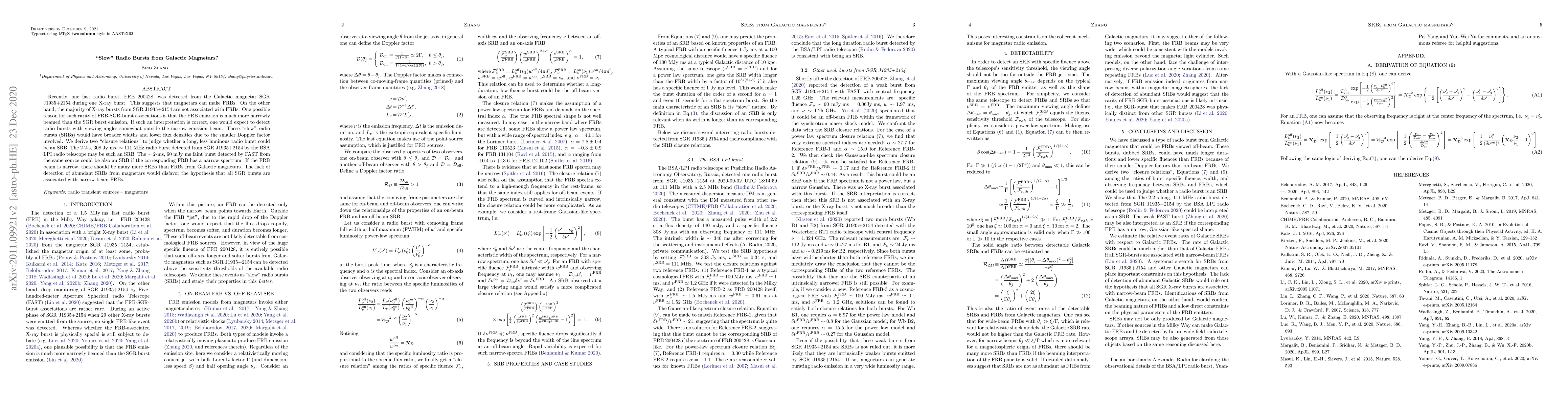 This paper investigates the possibility that Galactic magnetars, like SGR J1935+2154, can produce "slow" radio bursts (SRBs) as less beamed counterparts to the narrowly beamed fast radio bursts (FRBs). It proposes that the rarity of FRB-SGR associations may be due to the narrow beam of FRBs, suggesting that SRBs, with broader widths and lower flux densities, could be more common but harder to detect.
