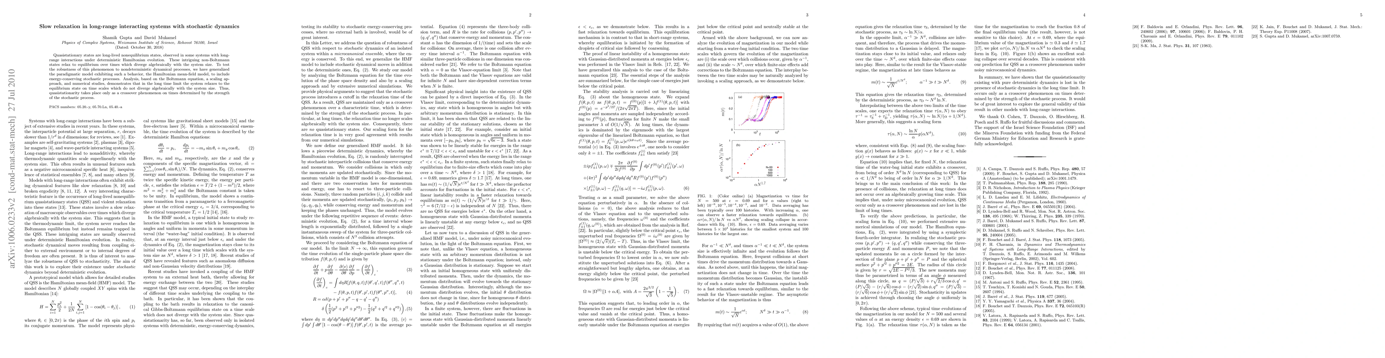 Quasistationary states are long-lived nonequilibrium states, observed in some systems with long-range interactions under deterministic Hamiltonian evolution. These intriguing non-Boltzmann states relax to equilibrium over times which diverge algebraically with the system size. To test the robustness of this phenomenon to non-deterministic dynamical processes, we have generalized the paradigmatic model exhibiting such a behavior, the Hamiltonian Mean-Field model, to include energy-conserving stochastic processes. Analysis, based on the Boltzmann equation, a scaling approach and numerical studies, demonstrates that in the long time limit, the system relaxes to the equilibrium state on timescales which do not diverge algebraically with the system size. Thus, quasistationarity takes place only as a crossover phenomenon on times determined by the strength of the stochastic process.