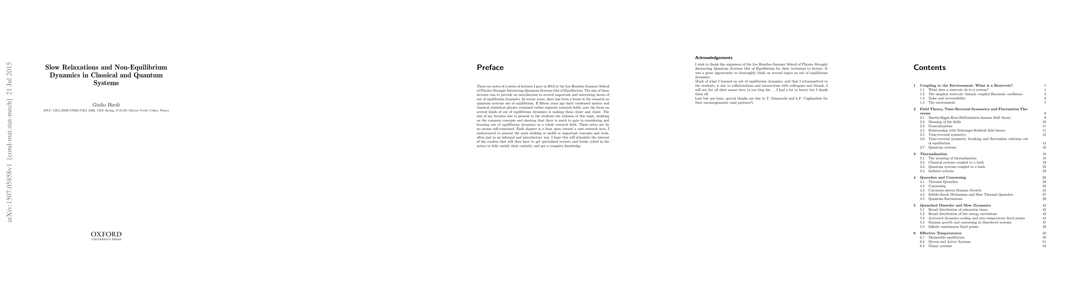 This research paper explores slow relaxations and non-equilibrium dynamics in both classical and quantum systems, highlighting their interconnectedness and potential for a unified understanding of out-of-equilibrium phenomena.