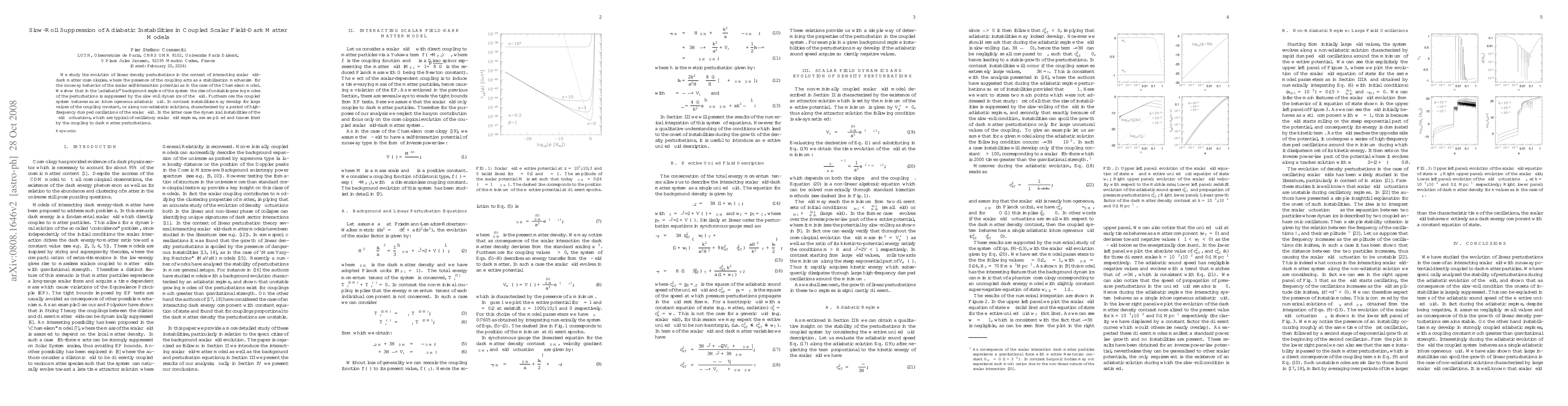 This paper investigates the suppression of adiabatic instabilities in coupled scalar field-dark matter models, demonstrating that slow-roll dynamics mitigate the growth of unstable perturbations. However, large coupling constants or non-adiabatic solutions can lead to amplified dynamical instabilities transmitted to dark matter perturbations.