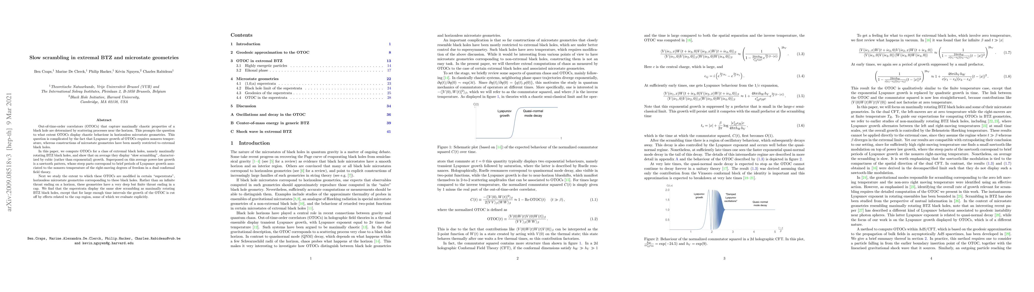 Out-of-time-order correlators (OTOCs) that capture maximally chaotic properties of a black hole are determined by scattering processes near the horizon. This prompts the question to what extent OTOCs display chaotic behaviour in horizonless microstate geometries. This question is complicated by the fact that Lyapunov growth of OTOCs requires nonzero temperature, whereas constructions of microstate geometries have been mostly restricted to extremal black holes. In this paper, we compute OTOCs for a class of extremal black holes, namely maximally rotating BTZ black holes, and show that on average they display "slow scrambling", characterized by cubic (rather than exponential) growth. Superposed on this average power-law growth is a sawtooth pattern, whose steep parts correspond to brief periods of Lyapunov growth associated to the nonzero temperature of the right-moving degrees of freedom in a dual conformal field theory. Next we study the extent to which these OTOCs are modified in certain "superstrata", horizonless microstate geometries corresponding to these black holes. Rather than an infinite throat ending on a horizon, these geometries have a very deep but finite throat ending in a cap. We find that the superstrata display the same slow scrambling as maximally rotating BTZ black holes, except that for large enough time intervals the growth of the OTOC is cut off by effects related to the cap region, some of which we evaluate explicitly.