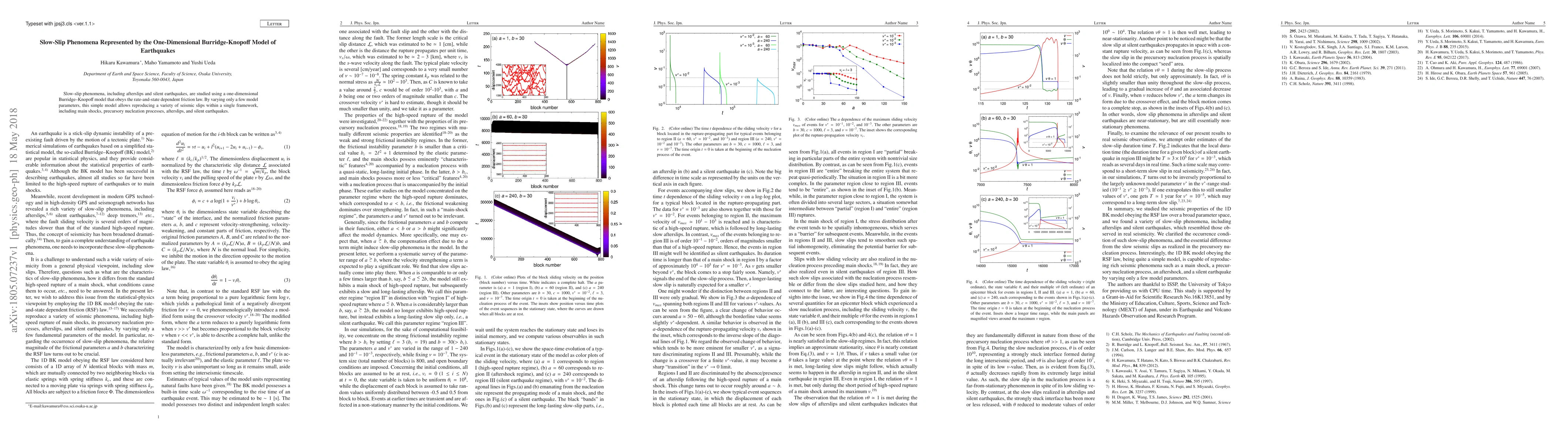 This paper investigates slow-slip phenomena like afterslips and silent earthquakes using a one-dimensional Burridge-Knopoff model governed by rate-and-state friction. The model effectively reproduces diverse seismic slips, including main shocks and precursory processes, by adjusting a few parameters.