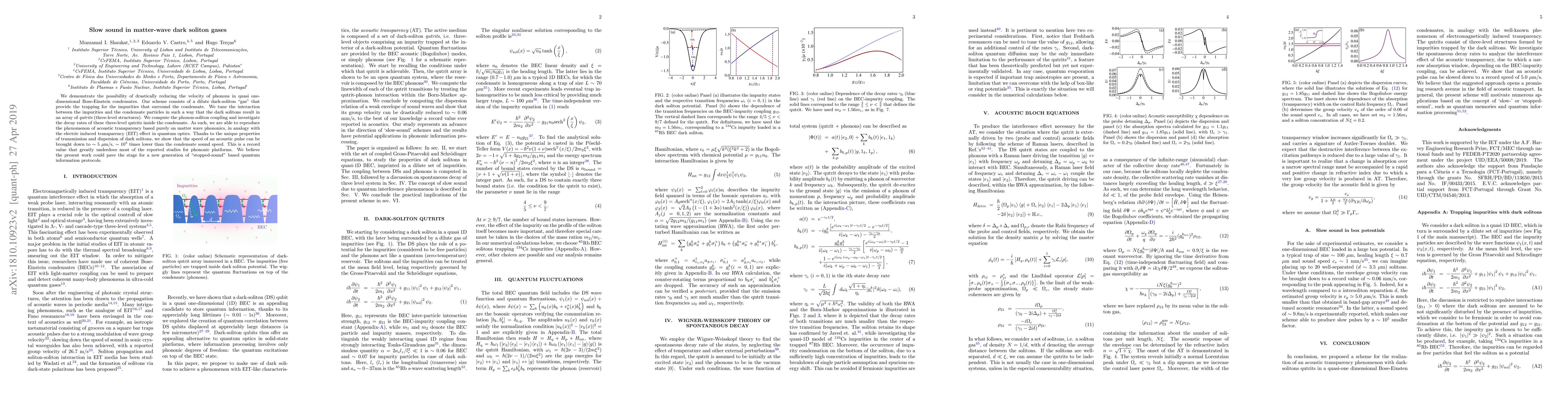 We demonstrate the possibility of drastically reducing the velocity of phonons in quasi one-dimensional Bose-Einstein condensates. Our scheme consists of a dilute dark-soliton "gas" that provide the trapping for the impurities that surround the condensate. We tune the interaction between the impurities and the condensate particles in such a way that the dark solitons result in an array of {\it qutrits} (three-level structures). We compute the phonon-soliton coupling and investigate the decay rates of these three-level qutrits inside the condensate. As such, we are able to reproduce the phenomenon of acoustic transparency based purely on matter wave phononics, in analogy with the electric induced transparency (EIT) effect in quantum optics. Thanks to the unique properties of transmission and dispersion of dark solitons, we show that the speed of an acoustic pulse can be brought down to $\sim 5$ $\mu$m/s, $\sim 10^3$ times lower than the condensate sound speed. This is a record value that greatly underdoes most of the reported studies for phononic platforms. We believe the present work could pave the stage for a new generation of "stopped-sound" based quantum information protocols.