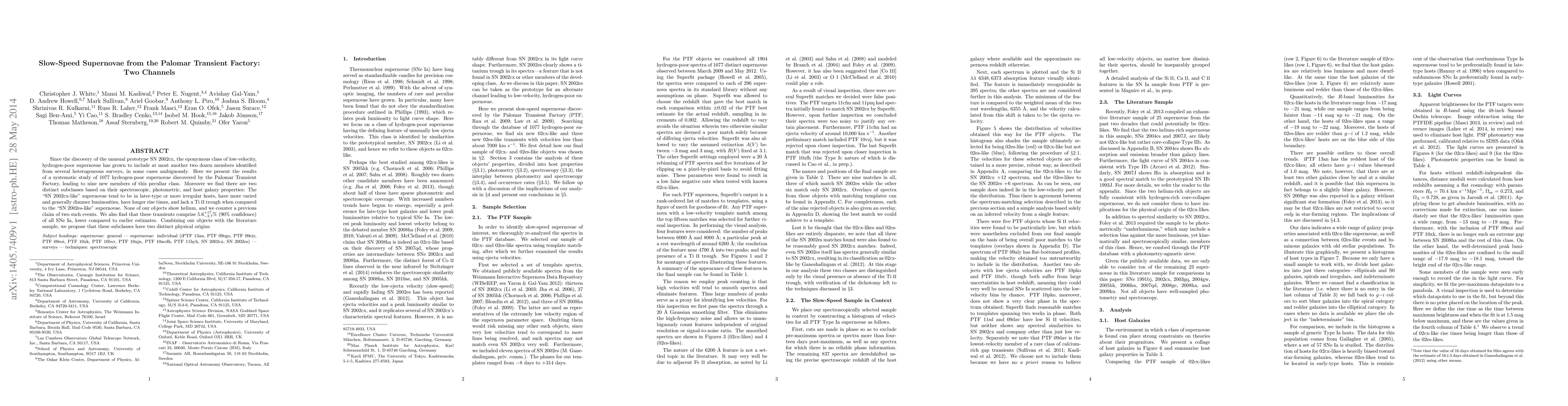 This paper identifies nine new slow-speed supernovae from the Palomar Transient Factory, revealing two distinct subclasses based on spectroscopic and photometric properties: "SN 2002cx-like" and "SN 2002es-like," with the former showing dimmer luminosities and longer rise times.