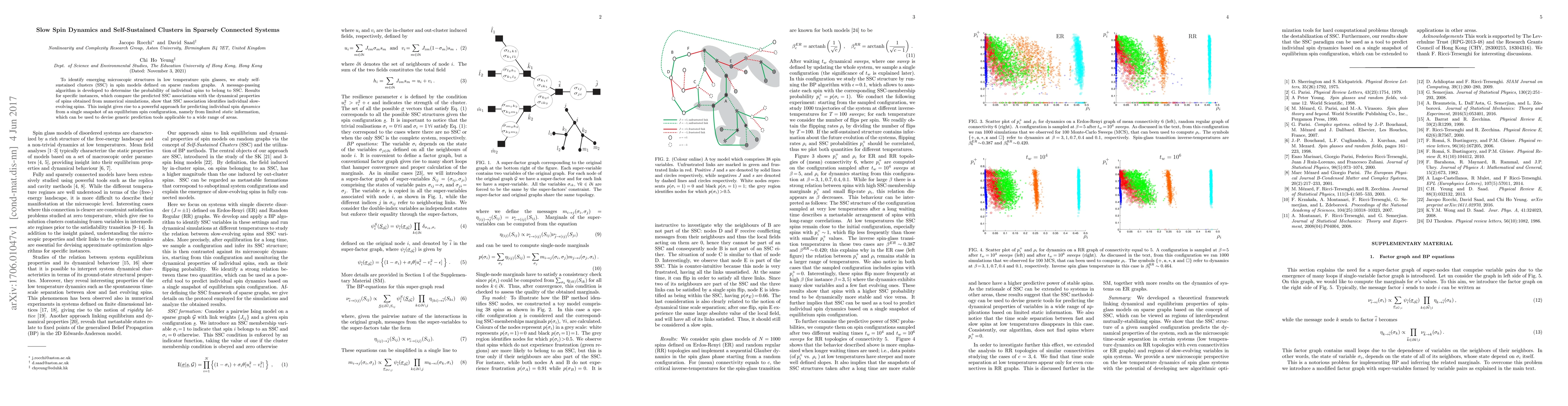 This paper investigates self-sustained clusters (SSC) in sparse spin models to identify slow-evolving spins in low-temperature spin glasses. A message-passing algorithm predicts SSC associations, which correlates well with numerical simulations, offering a method to predict spin dynamics from static snapshots.