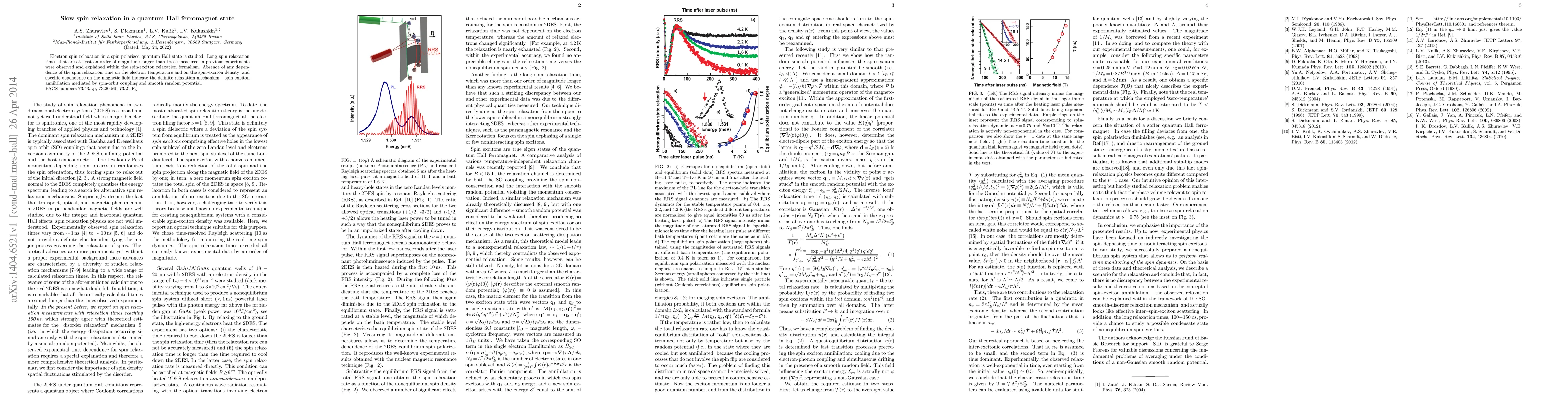 This study reveals exceptionally long spin relaxation times in a quantum Hall ferromagnet, significantly longer than previous measurements, attributed to spin-exciton annihilation via spin-orbit coupling and a smooth random potential. The relaxation time shows no dependence on electron temperature or spin-exciton density, highlighting a unique relaxation mechanism.