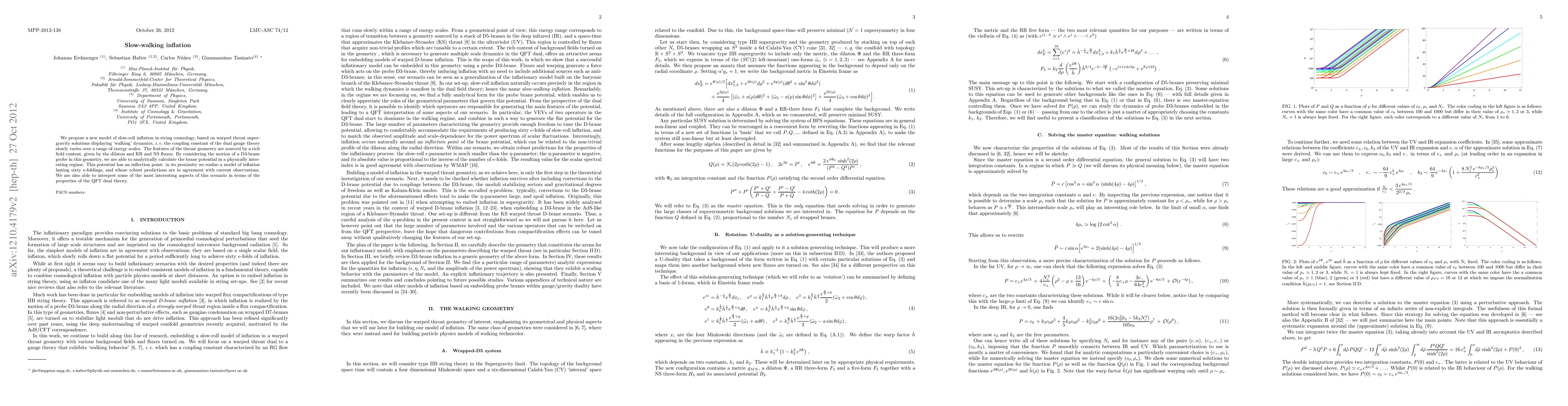 The paper presents a novel approach to modeling slow-roll inflation in string cosmology by utilizing warped throat supergravity solutions with walking dynamics, enabling analytical calculation of the brane potential and identification of an inflection point for sustained inflation.