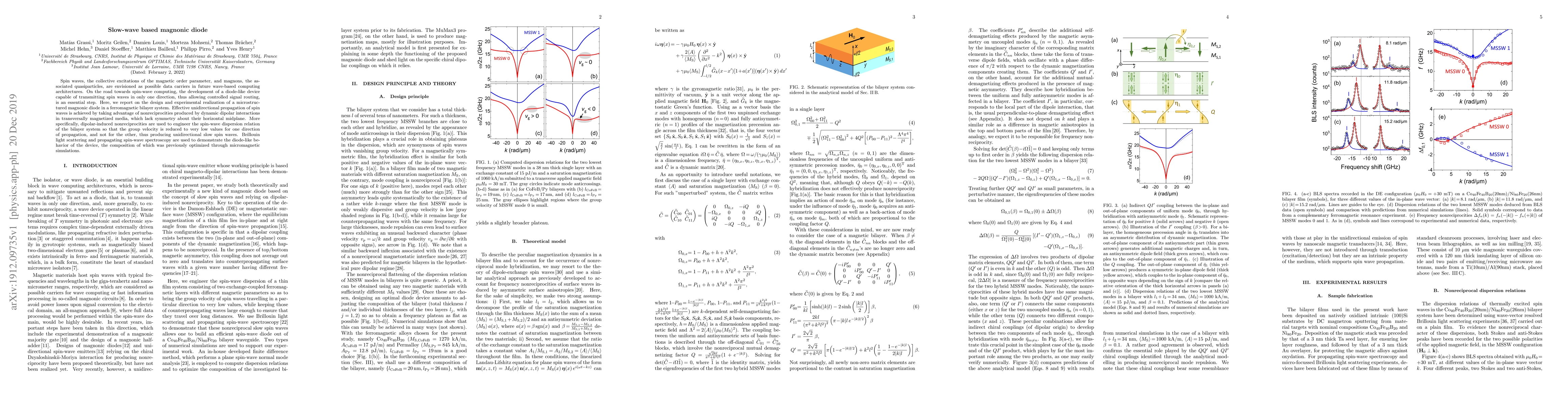 Spin waves, the collective excitations of the magnetic order parameter, and magnons, the associated quasiparticles, are envisioned as possible data carriers in future wave-based computing architectures. On the road towards spin-wave computing, the development of a diode-like device capable of transmitting spin waves in only one direction, thus allowing controlled signal routing, is an essential step. Here, we report on the design and experimental realization of a microstructured magnonic diode in a ferromagnetic bilayer system. Effective unidirectional propagation of spin waves is achieved by taking advantage of nonreciprocities produced by dynamic dipolar interactions in transversally magnetized media, which lack symmetry about their horizontal midplane. More specifically, dipolar-induced nonreciprocities are used to engineer the spin-wave dispersion relation of the bilayer system so that the group velocity is reduced to very low values for one direction of propagation, and not for the other, thus producing unidirectional slow spin waves. Brillouin light scattering and propagating spin-wave spectroscopy are used to demonstrate the diode-like behavior of the device, the composition of which was previously optimized through micromagnetic simulations. simulations.