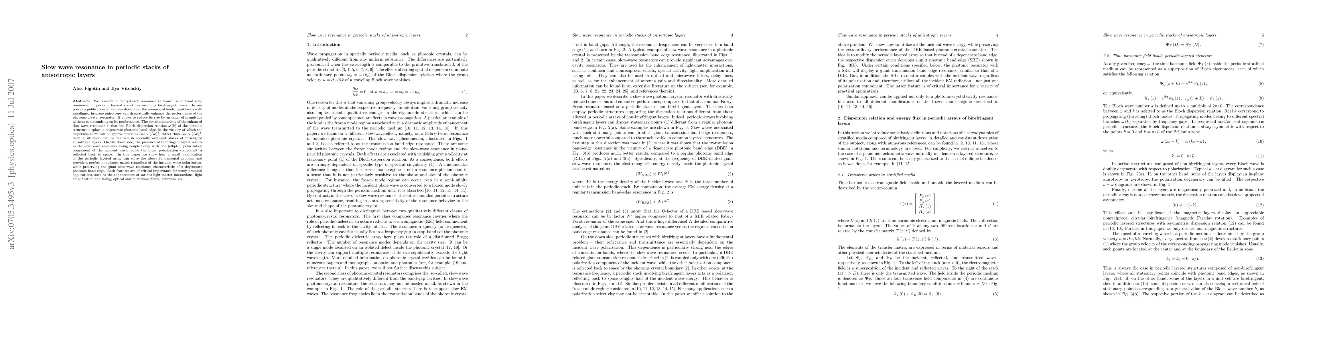 This paper investigates the transmission band edge resonance in periodic stacks of birefringent layers, demonstrating how a modified arrangement can achieve perfect impedance matching for both polarizations while maintaining enhanced transmission resonance, crucial for applications like antennas and optical filters.