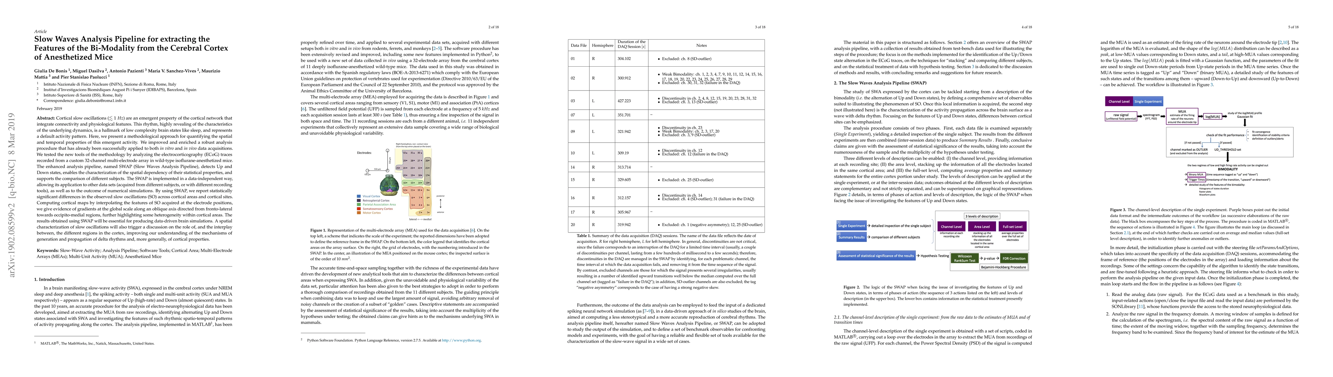 Cortical slow oscillations are an emergent property of the cortical network, a hallmark of low complexity brain states like sleep, and represent a default activity pattern. Here, we present a methodological approach for quantifying the spatial and temporal properties of this emergent activity. We improved and enriched a robust analysis procedure that has already been successfully applied to both in vitro and in vivo data acquisitions. We tested the new tools of the methodology by analyzing the electrocorticography (ECoG) traces recorded from a custom 32-channel multi-electrode array in wild-type isoflurane-anesthetized mice. The enhanced analysis pipeline, named SWAP (Slow Waves Analysis Pipeline), detects Up and Down states, enables the characterization of the spatial dependency of their statistical properties, and supports the comparison of different subjects. The SWAP is implemented in a data-independent way, allowing its application to other data sets (acquired from different subjects, or with different recording tools), as well as to the outcome of numerical simulations. By using SWAP, we report statistically significant differences in the observed slow oscillations (SO) across cortical areas and cortical sites. Computing cortical maps by interpolating the features of SO acquired at the electrode positions, we give evidence of gradients at the global scale along an oblique axis directed from fronto-lateral towards occipito-medial regions, further highlighting some heterogeneity within cortical areas. The results obtained on spatial characterization of slow oscillations will be essential for producing data-driven brain simulations and for triggering a discussion on the role of, and the interplay between, the different regions in the cortex, improving our understanding of the mechanisms of generation and propagation of delta rhythms and, more generally, of cortical properties.