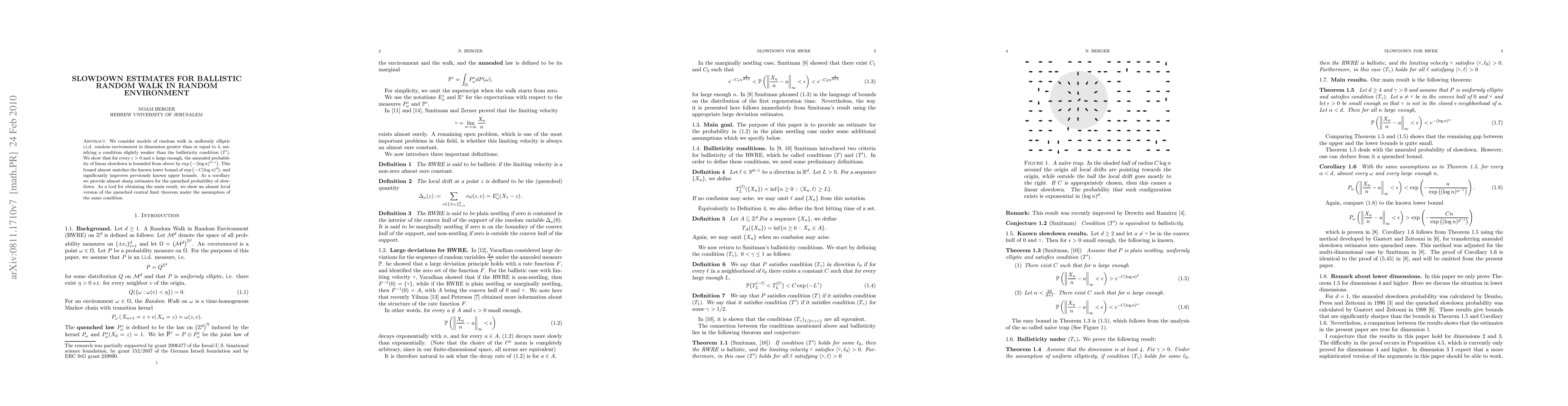 This paper investigates the probability of linear slowdown in a ballistic random walk in a random elliptic environment, demonstrating an upper bound that closely matches the lower bound from "naive trap" analysis. The study also proves an almost local quenched central limit theorem under a similar ballisticity condition.