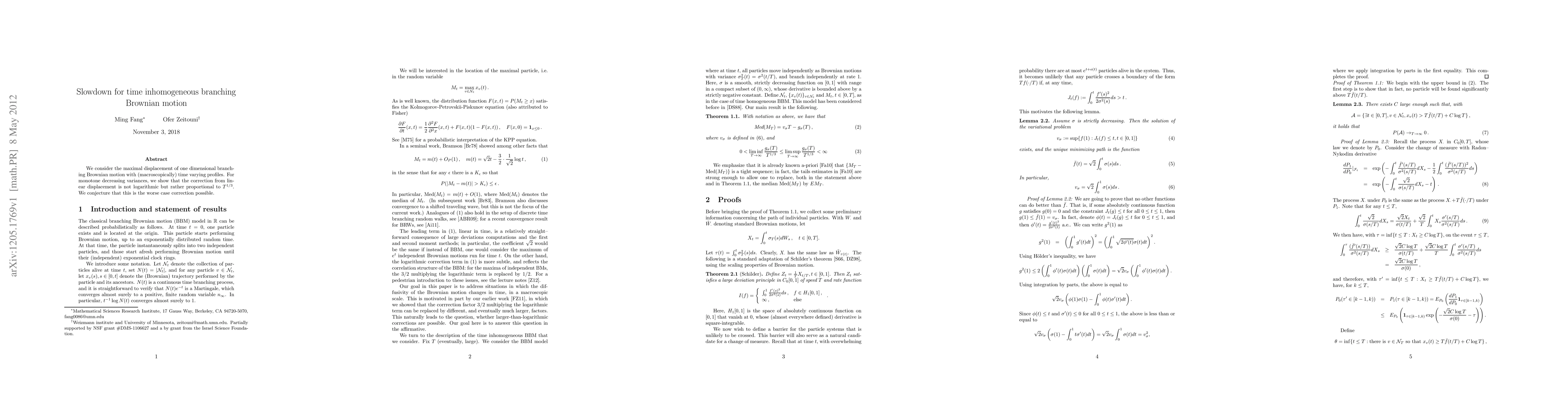 Summary: This study investigates the maximal displacement in time inhomogeneous branching Brownian motion with varying variances, revealing that the correction from linear displacement is proportional to $T^{1/3}$ rather than logarithmic, suggesting this may be the worst-case scenario.