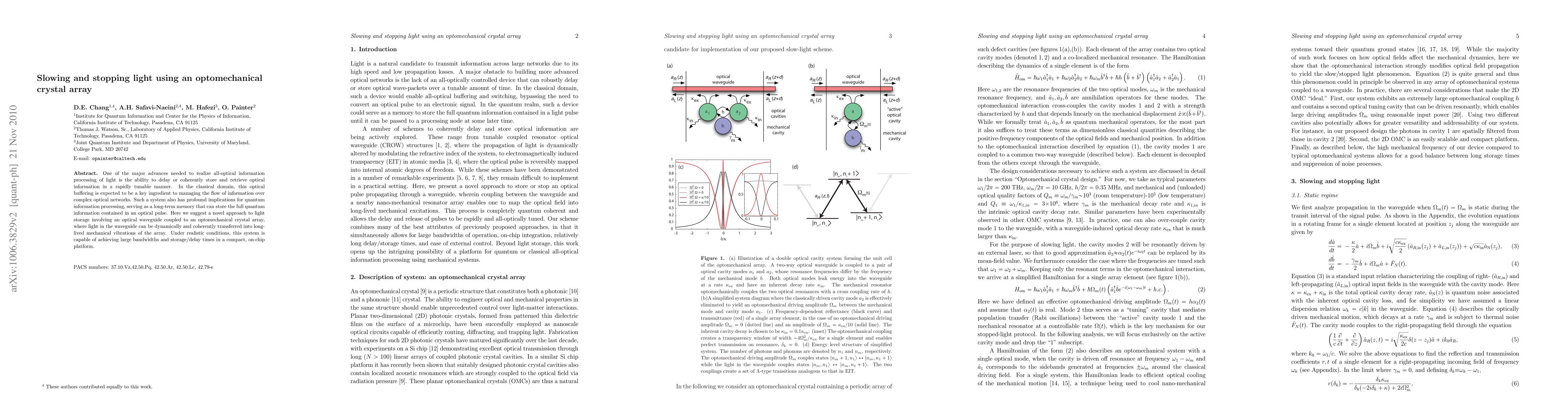One of the major advances needed to realize all-optical information processing of light is the ability to delay or coherently store and retrieve optical information in a rapidly tunable manner. In the classical domain, this optical buffering is expected to be a key ingredient to managing the flow of information over complex optical networks. Such a system also has profound implications for quantum information processing, serving as a long-term memory that can store the full quantum information contained in an optical pulse. Here we suggest a novel approach to light storage involving an optical waveguide coupled to an optomechanical crystal array, where light in the waveguide can be dynamically and coherently transferred into long-lived mechanical vibrations of the array. Under realistic conditions, this system is capable of achieving large bandwidths and storage/delay times in a compact, on-chip platform.