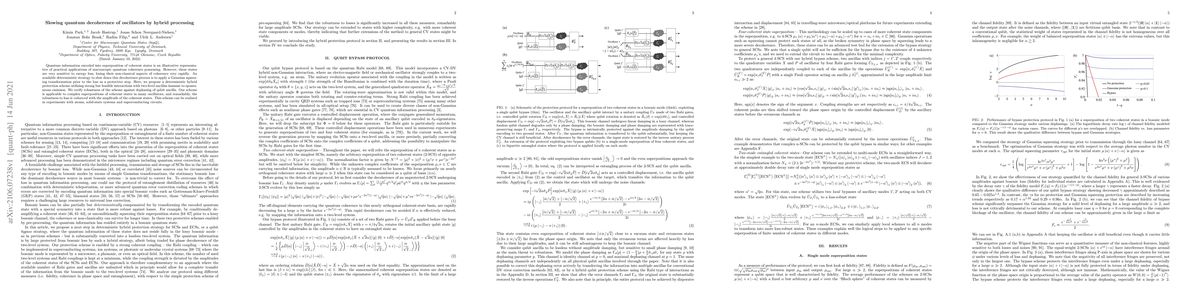 Researchers propose a hybrid protection scheme to slow down quantum decoherence in oscillators using strong but feasible interactions with two-level ancillas. The scheme demonstrates enhanced robustness to loss for complex superpositions of coherent states.