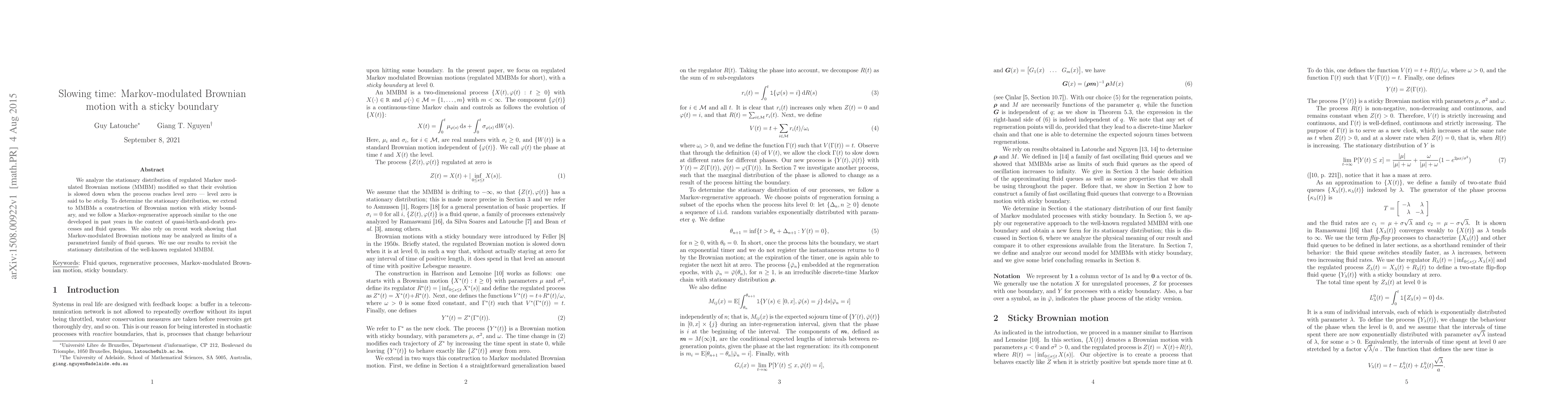 We analyze the stationary distribution of regulated Markov modulated Brownian motions (MMBM) modified so that their evolution is slowed down when the process reaches level zero --- level zero is said to be {\em sticky}. To determine the stationary distribution, we extend to MMBMs a construction of Brownian motion with sticky boundary, and we follow a Markov-regenerative approach similar to the one developed in past years in the context of quasi-birth-and-death processes and fluid queues. We also rely on recent work showing that Markov-modulated Brownian motions may be analyzed as limits of a parametrized family of fluid queues. We use our results to revisit the stationary distribution of the well-known regulated MMBM.