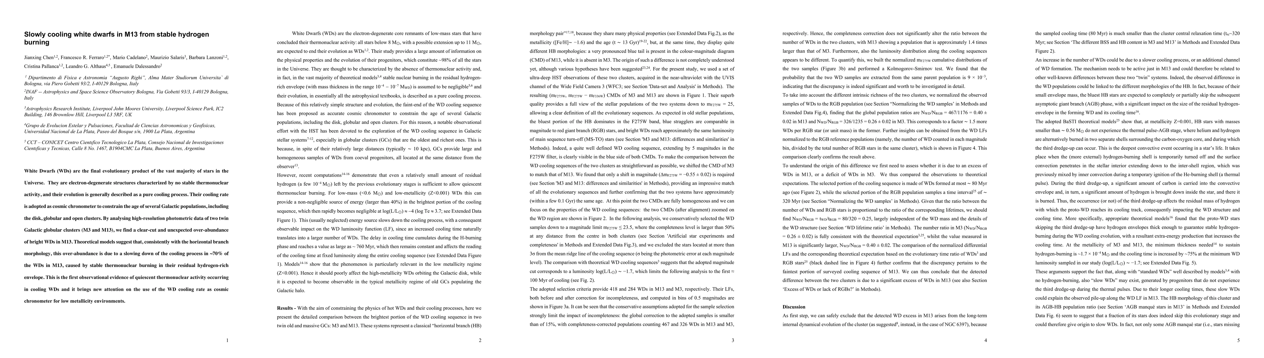 This paper reports an unexpected over-abundance of bright white dwarfs in M13, suggesting a slowing down of the cooling process due to stable hydrogen burning in their envelopes, challenging the traditional view of WDs as purely cooling objects and impacting the use of WD cooling rates as cosmic chronometers.