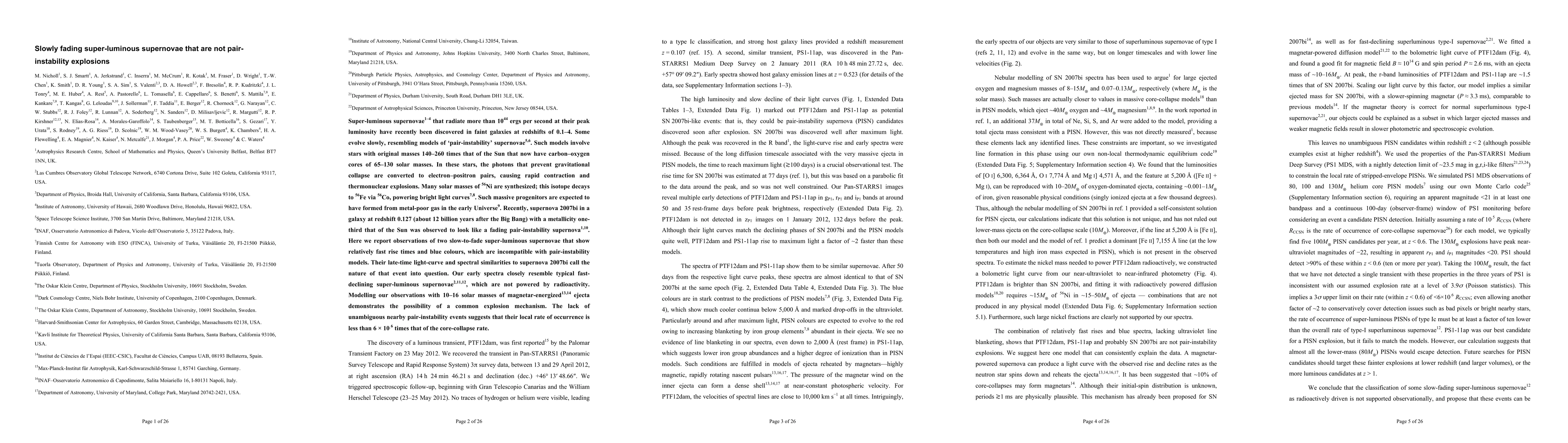 This paper reports observations of two slowly fading super-luminous supernovae that do not fit the pair-instability model, suggesting alternative explosion mechanisms. The findings challenge the classification of similar supernovae and propose magnetar-powered explosions as a common mechanism.