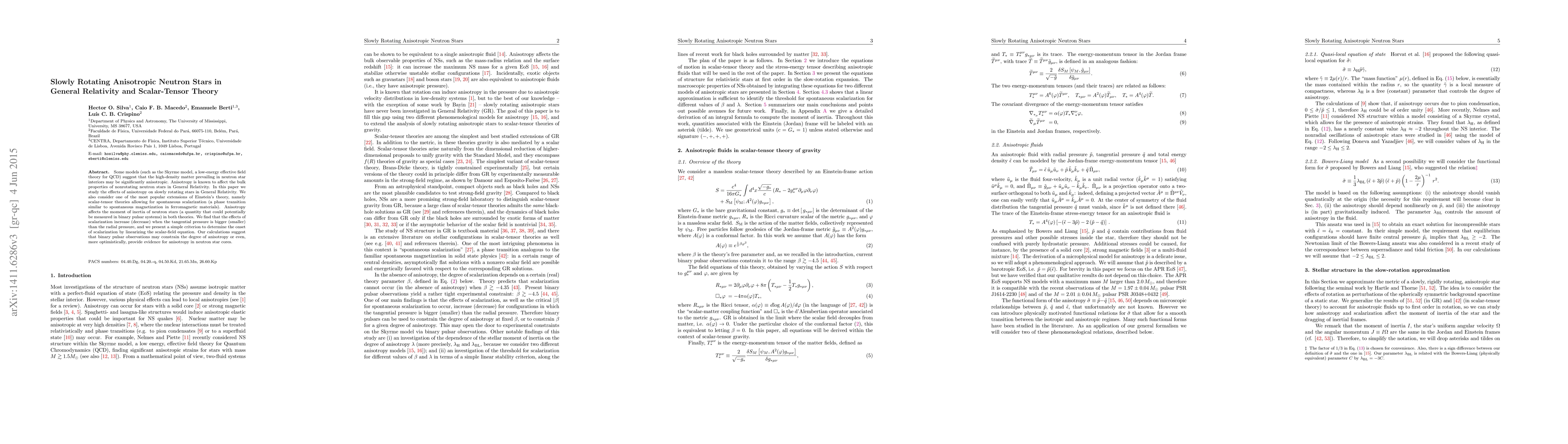 This paper investigates the impact of anisotropy on slowly rotating neutron stars in both General Relativity and scalar-tensor theories, finding that anisotropy affects the moment of inertia. It also explores scalarization effects, suggesting that binary pulsar observations could constrain or reveal anisotropy in neutron star cores.