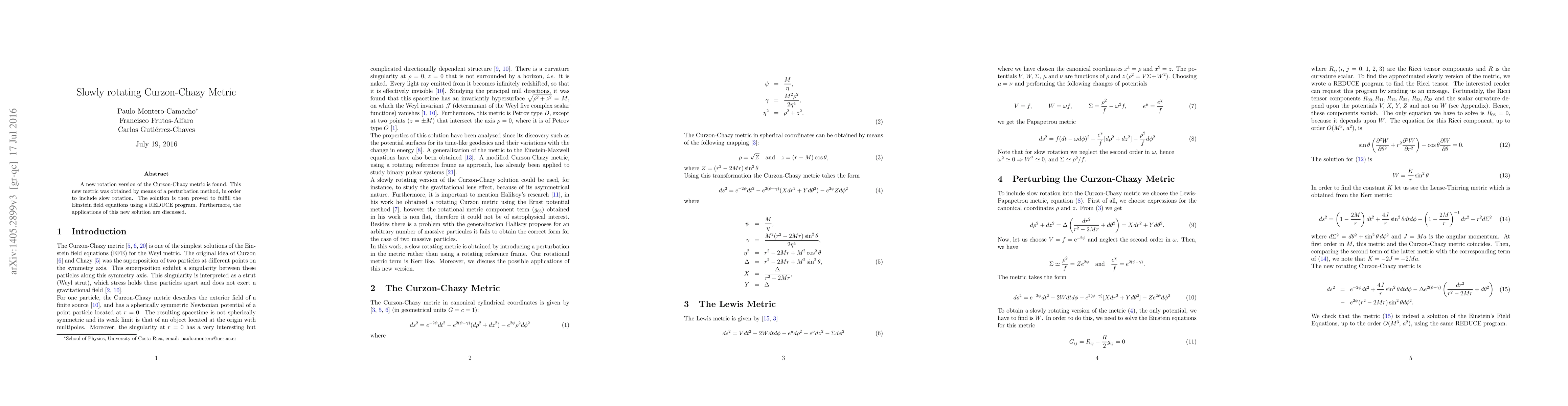 Researchers have discovered a new rotation version of the Curzon-Chazy metric that includes slow rotation, proven to satisfy Einstein's field equations, with potential applications discussed.