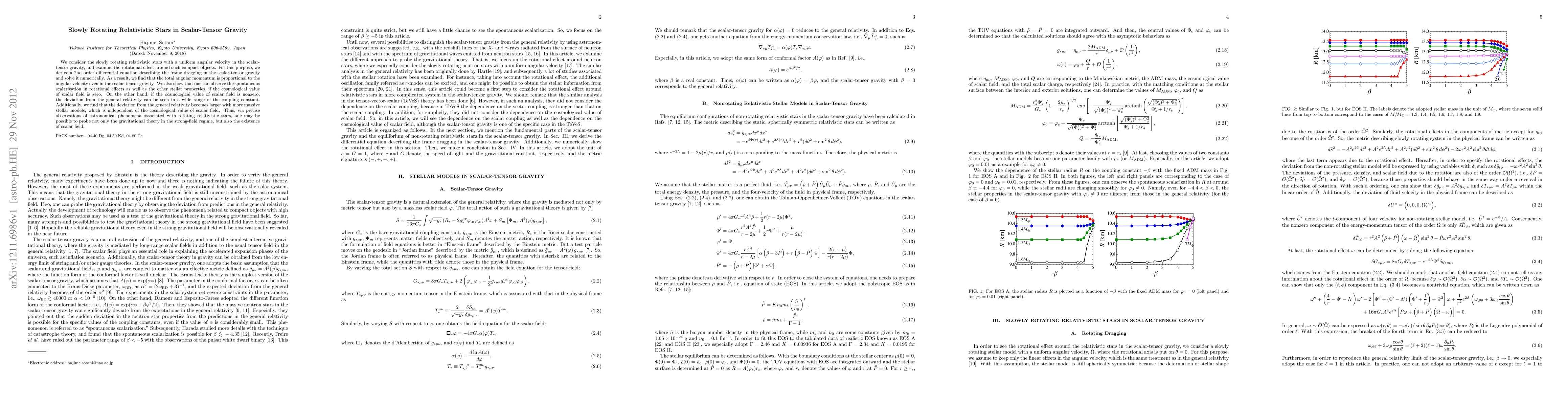 This paper investigates slowly rotating relativistic stars in scalar-tensor gravity, deriving a differential equation for frame dragging and finding proportional angular momentum to angular velocity. It also explores spontaneous scalarization and deviations from general relativity, especially in massive stars, suggesting potential observational tests for gravitational theories and scalar fields.