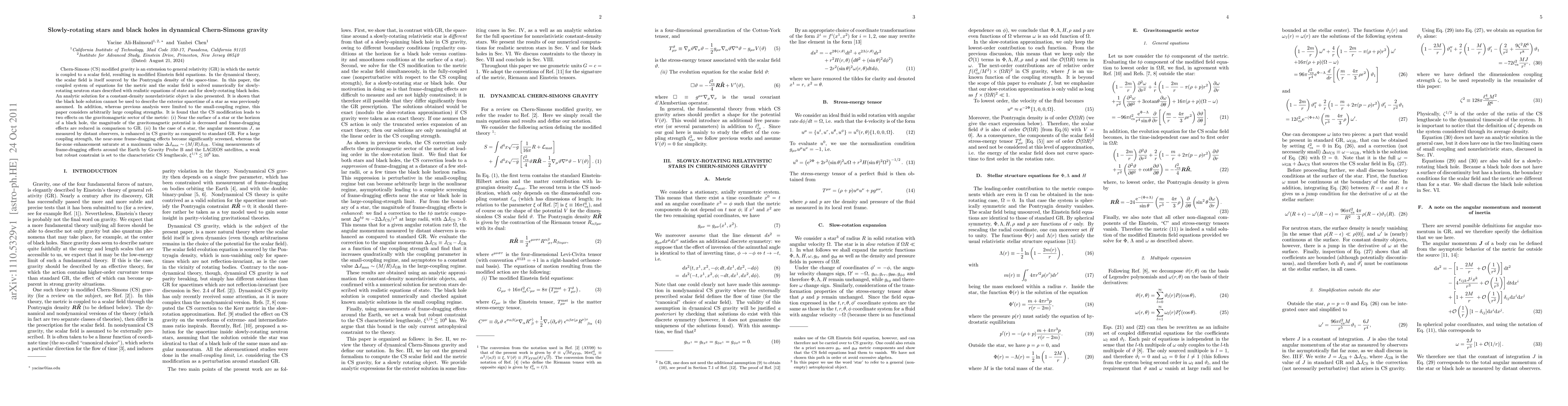 This paper uses dynamical Chern-Simons gravity to model slowly-rotating stars and black holes, finding that the modified Einstein field equations lead to reduced frame-dragging effects and enhanced angular momentum in certain regions.