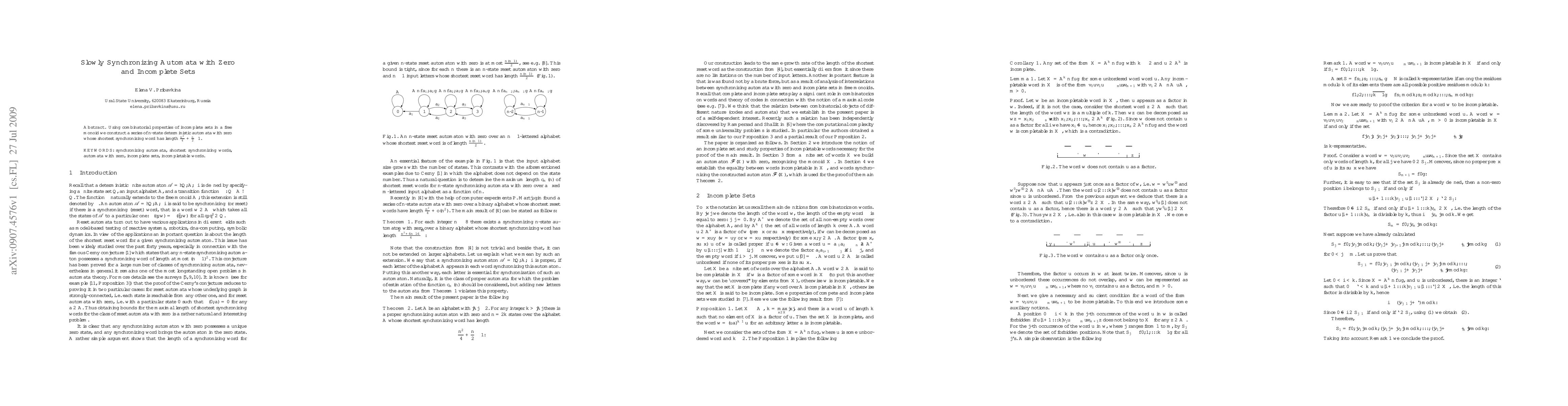 The paper introduces a novel construction method for n-state deterministic automata with zero, leveraging incomplete sets in free monoids to determine the shortest synchronizing word length.