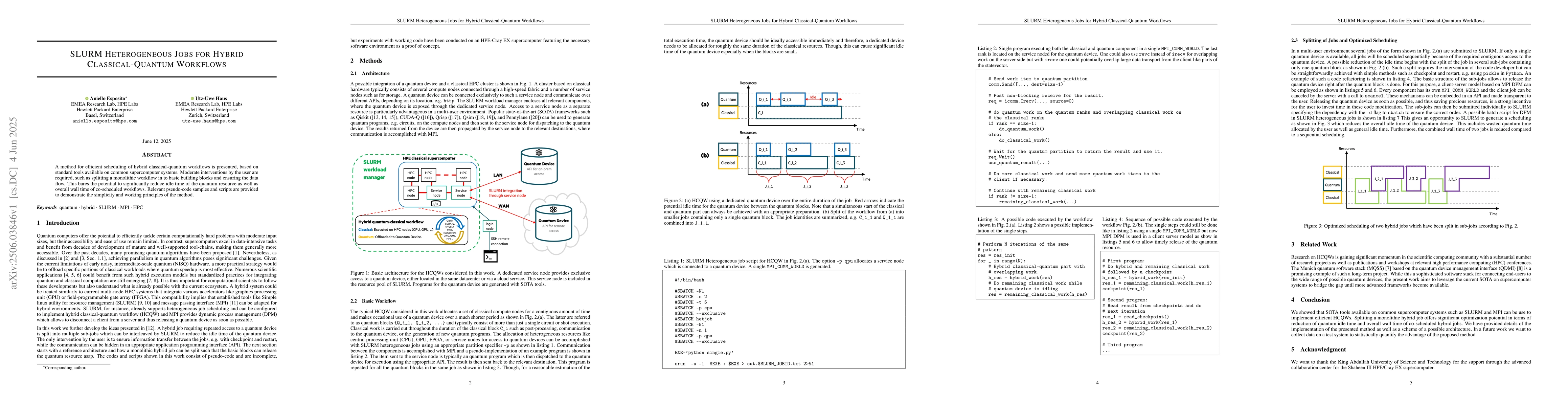 A method for efficient scheduling of hybrid classical-quantum workflows is presented, based on standard tools available on common supercomputer systems. Moderate interventions by the user are required, such as splitting a monolithic workflow in to basic building blocks and ensuring the data flow. This bares the potential to significantly reduce idle time of the quantum resource as well as overall wall time of co-scheduled workflows. Relevant pseudo-code samples and scripts are provided to demonstrate the simplicity and working principles of the method.