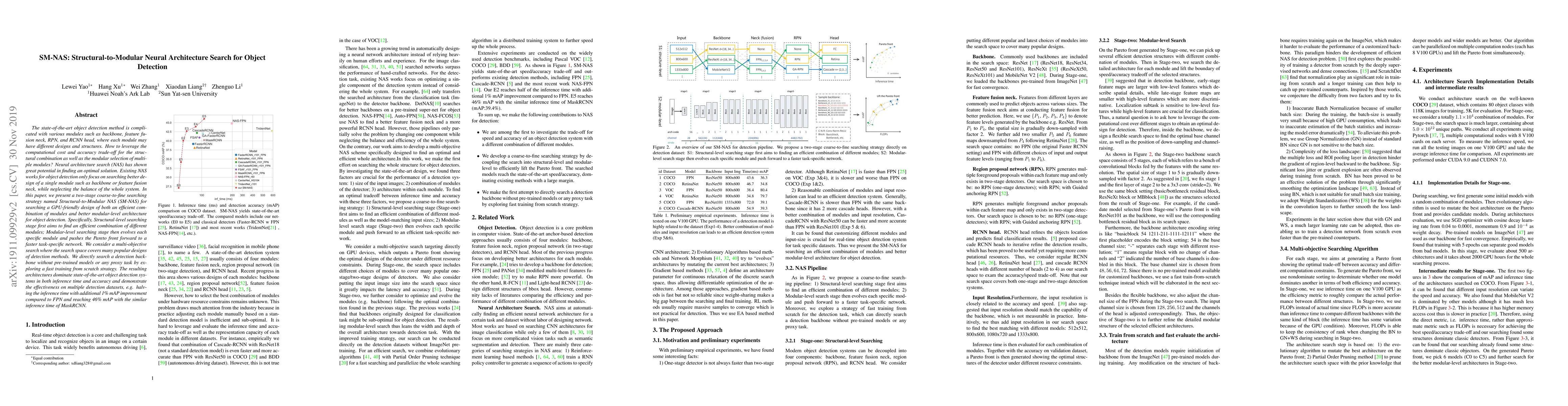 The paper introduces SM-NAS, a two-stage neural architecture search method for optimizing object detection systems by efficiently combining and evolving modular components. The approach achieves significant improvements in both speed and accuracy, outperforming existing state-of-the-art methods on multiple datasets.
