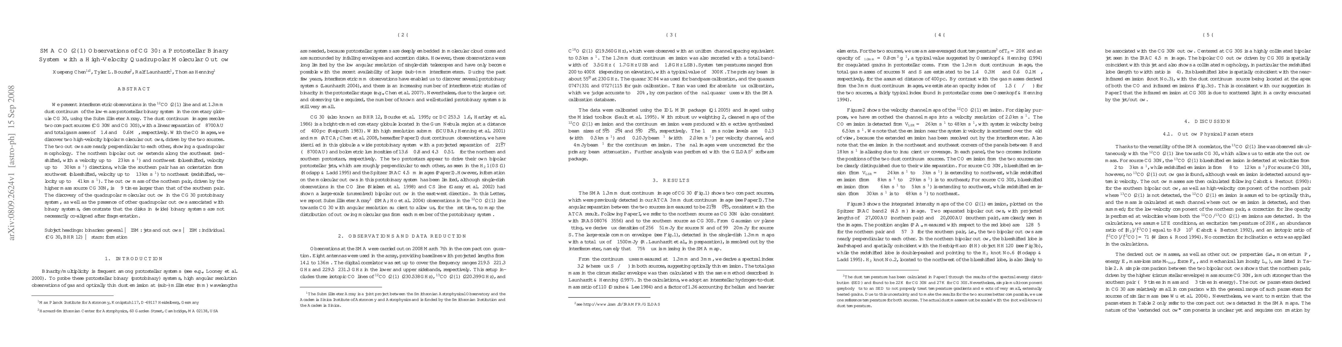 Researchers observed a protostellar binary system in CG30, discovering a high-velocity quadrupolar molecular outflow with two nearly perpendicular bipolar outflows driven by the two sources. The study's findings suggest that binary systems' disks can be fragmented and not co-aligned after formation.