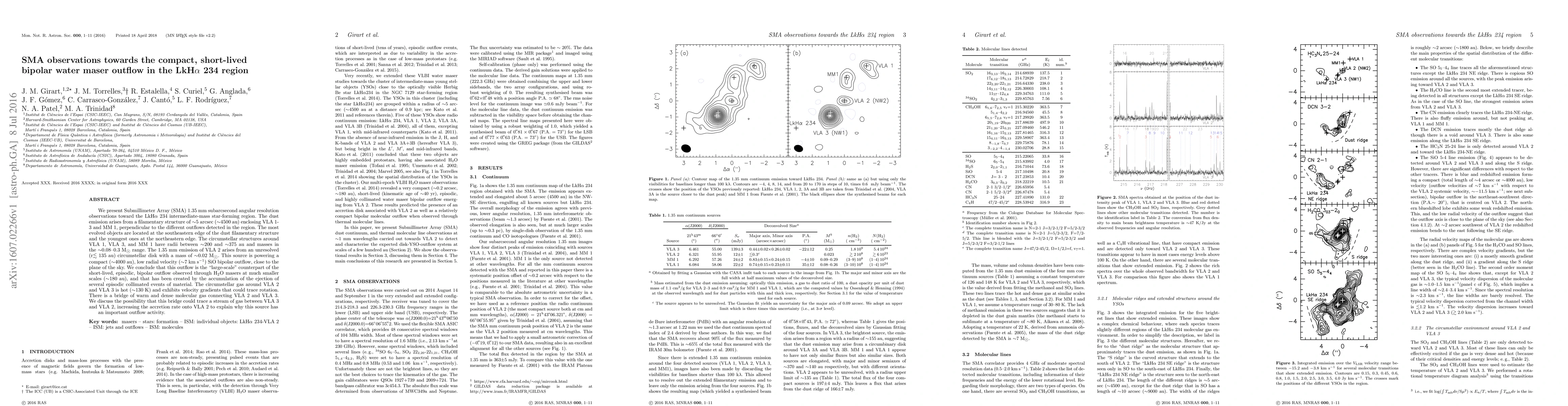 We present Submillimeter Array (SMA) 1.35 mm subarcsecond angular resolution observations toward the LkH{\alpha} 234 intermediate-mass star-forming region. The dust emission arises from a filamentary structure of $\sim$5 arcsec ($\sim$4500 au) enclosing VLA 1-3 and MM 1, perpendicular to the different outflows detected in the region. The most evolved objects are located at the southeastern edge of the dust filamentary structure and the youngest ones at the northeastern edge. The circumstellar structures around VLA 1, VLA 3, and MM 1 have radii between $\sim$200 and $\sim$375 au and masses in the $\sim$0.08-0.3 M$_{\odot}$ range. The 1.35 mm emission of VLA 2 arises from an unresolved (r$< 135$ au) circumstellar disk with a mass of $\sim$0.02 M$_{\odot}$. This source is powering a compact ($\sim$4000 au), low radial velocity ($\sim$7 km s$^{-1}$) SiO bipolar outflow, close to the plane of the sky. We conclude that this outflow is the "large-scale" counterpart of the short-lived, episodic, bipolar outflow observed through H$_2$O masers at much smaller scales ($\sim $180 au), and that has been created by the accumulation of the ejection of several episodic collimated events of material. The circumstellar gas around VLA 2 and VLA 3 is hot ($\sim$130 K) and exhibits velocity gradients that could trace rotation. There is a bridge of warm and dense molecular gas connecting VLA 2 and VLA 3. We discuss the possibility that this bridge could trace a stream of gas between VLA 3 and VLA 2, increasing the accretion rate onto VLA 2 to explain why this source has an important outflow activity.