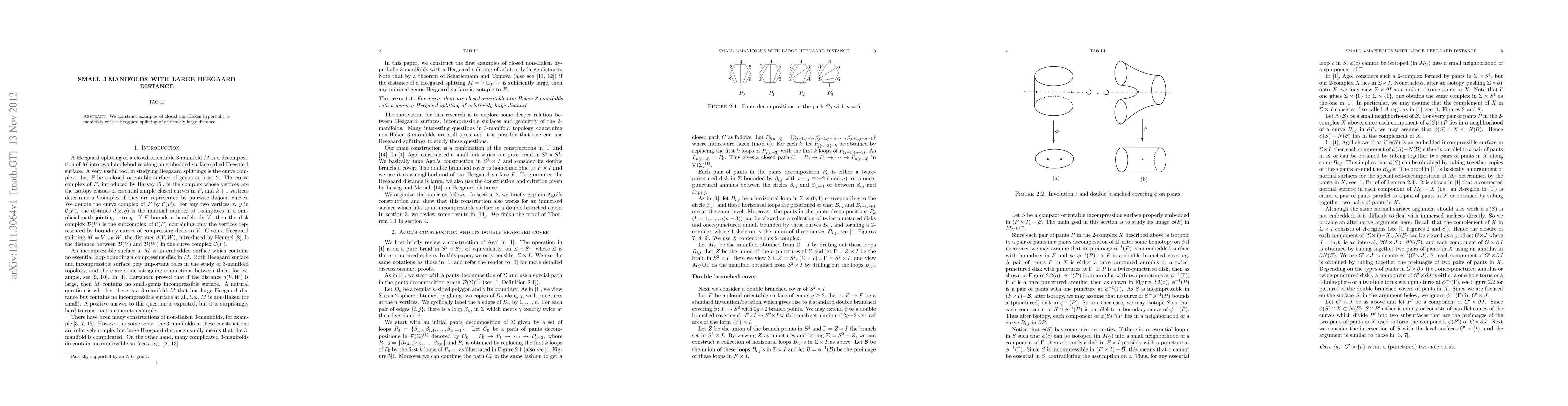 We construct examples of closed non-Haken hyperbolic 3-manifolds with a Heegaard splitting of arbitrarily large distance.