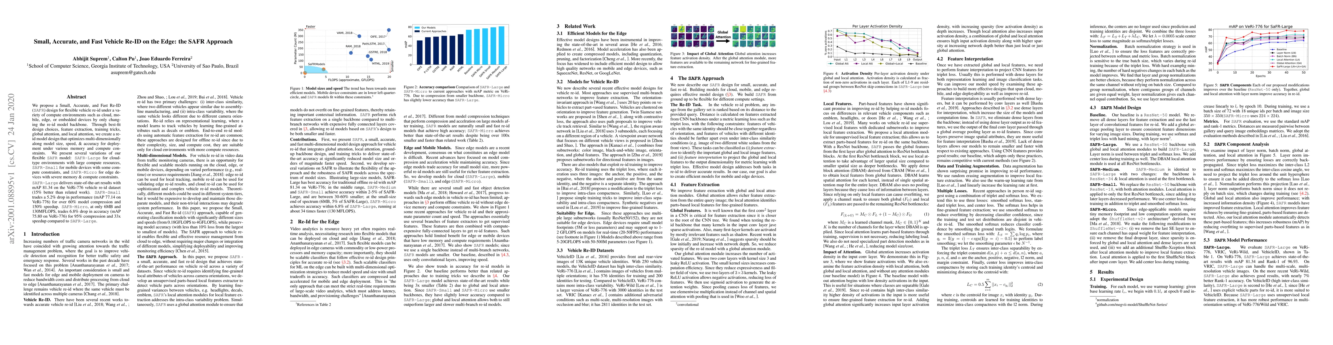 We propose a Small, Accurate, and Fast Re-ID (SAFR) design for flexible vehicle re-id under a variety of compute environments such as cloud, mobile, edge, or embedded devices by only changing the re-id model backbone. Through best-fit design choices, feature extraction, training tricks, global attention, and local attention, we create a reid model design that optimizes multi-dimensionally along model size, speed, & accuracy for deployment under various memory and compute constraints. We present several variations of our flexible SAFR model: SAFR-Large for cloud-type environments with large compute resources, SAFR-Small for mobile devices with some compute constraints, and SAFR-Micro for edge devices with severe memory & compute constraints. SAFR-Large delivers state-of-the-art results with mAP 81.34 on the VeRi-776 vehicle re-id dataset (15% better than related work). SAFR-Small trades a 5.2% drop in performance (mAP 77.14 on VeRi-776) for over 60% model compression and 150% speedup. SAFR-Micro, at only 6MB and 130MFLOPS, trades 6.8% drop in accuracy (mAP 75.80 on VeRi-776) for 95% compression and 33x speedup compared to SAFR-Large.