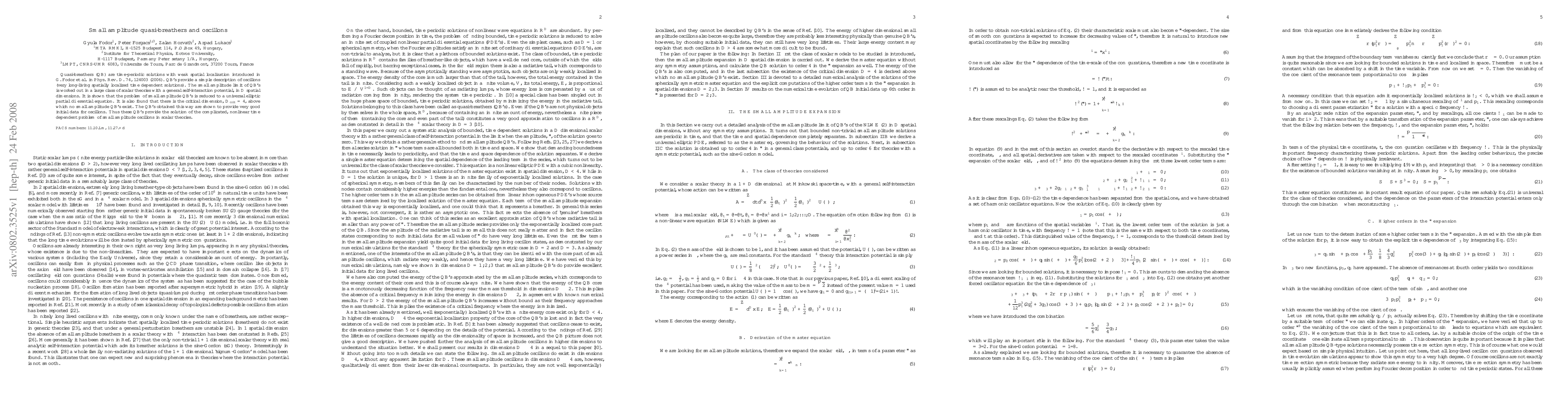 Quasi-breathers (QB) are time-periodic solutions with weak spatial localization introduced in G. Fodor et al. in Phys. Rev. D. 74, 124003 (2006). QB's provide a simple description of oscillons (very long-living spatially localized time dependent solutions). The small amplitude limit of QB's is worked out in a large class of scalar theories with a general self-interaction potential, in $D$ spatial dimensions. It is shown that the problem of small amplitude QB's is reduced to a universal elliptic partial differential equation. It is also found that there is the critical dimension, $D_{crit}=4$, above which no small amplitude QB's exist. The QB's obtained this way are shown to provide very good initial data for oscillons. Thus these QB's provide the solution of the complicated, nonlinear time dependent problem of small amplitude oscillons in scalar theories.