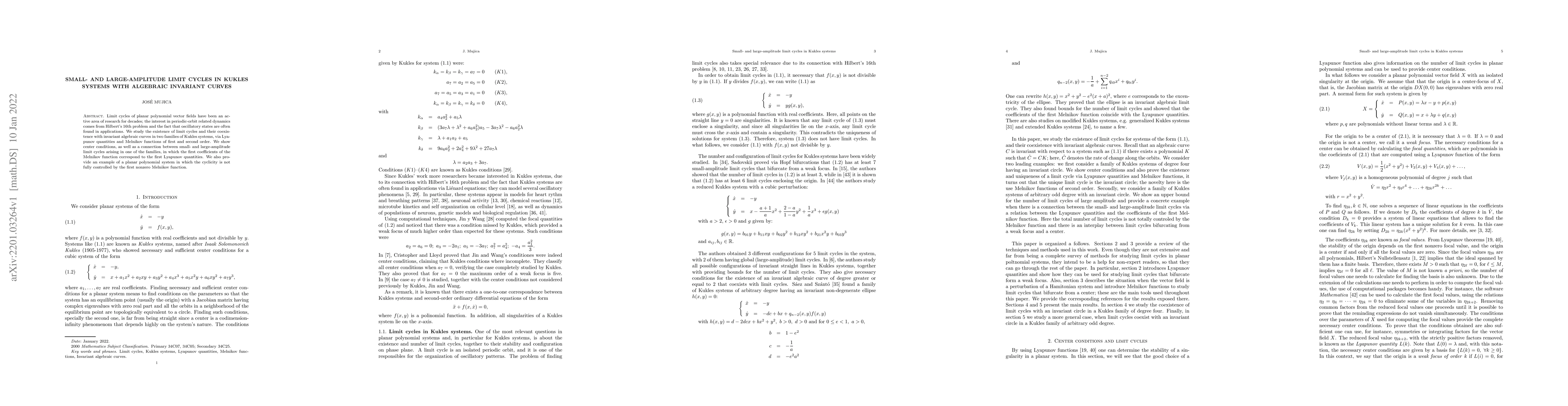Limit cycles of planar polynomial vector fields have been an active area of research for decades; the interest in periodic-orbit related dynamics comes from Hilbert's 16th problem and the fact that oscillatory states are often found in applications. We study the existence of limit cycles and their coexistence with invariant algebraic curves in two families of Kukles systems, via Lyapunov quantities and Melnikov functions of first and second order. We show center conditions, as well as a connection between small- and large-amplitude limit cycles arising in one of the families, in which the first coefficients of the Melnikov function correspond to the first Lyapunov quantities. We also provide an example of a planar polynomial system in which the cyclicity is not fully controlled by the first nonzero Melnikov function.