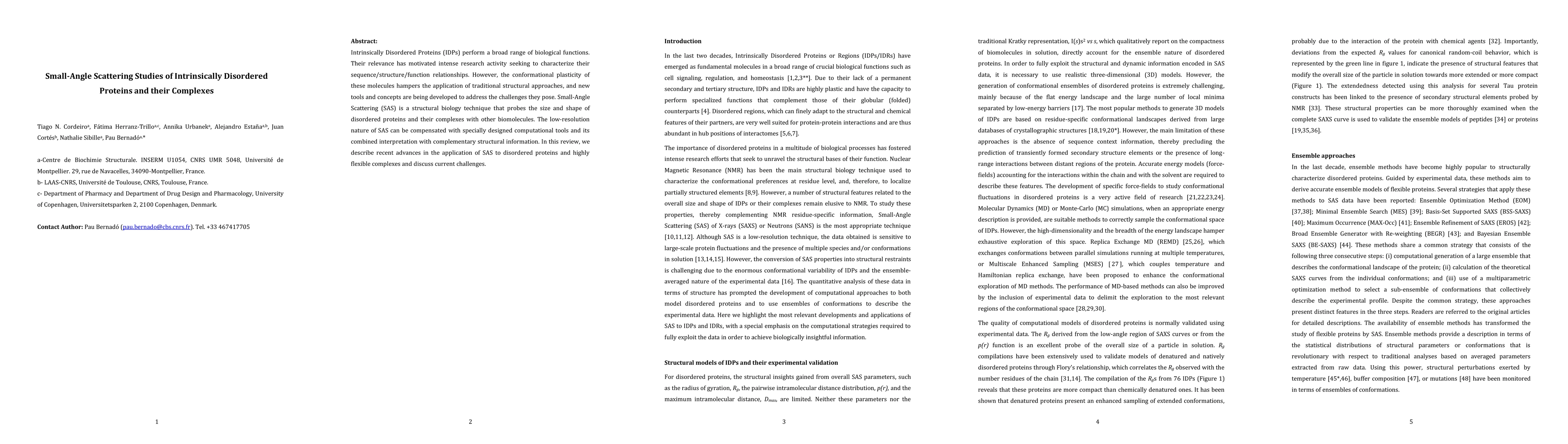 This paper reviews the use of Small-Angle Scattering (SAS) to study the size and shape of intrinsically disordered proteins, highlighting recent advances and the development of computational tools to interpret low-resolution data. It also discusses the challenges posed by the conformational plasticity of these proteins.