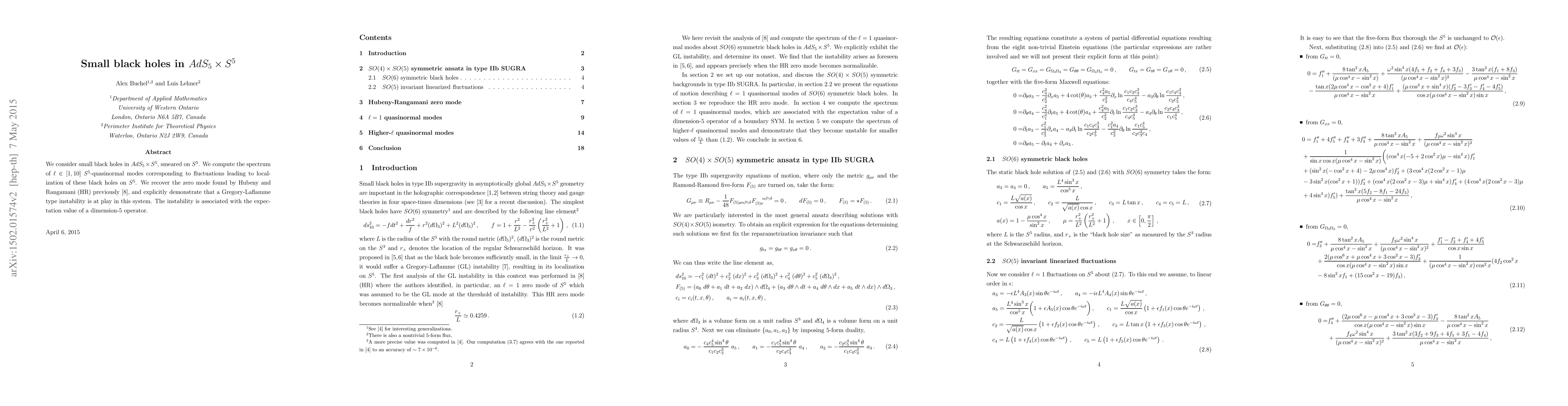 This paper investigates small black holes in $AdS_5\times S^5$ and computes the spectrum of $S^5$-quasinormal modes for $\ell \in [1,10]$. It confirms the Gregory-Laflamme instability and shows that it is linked to the expectation value of a dimension-5 operator.