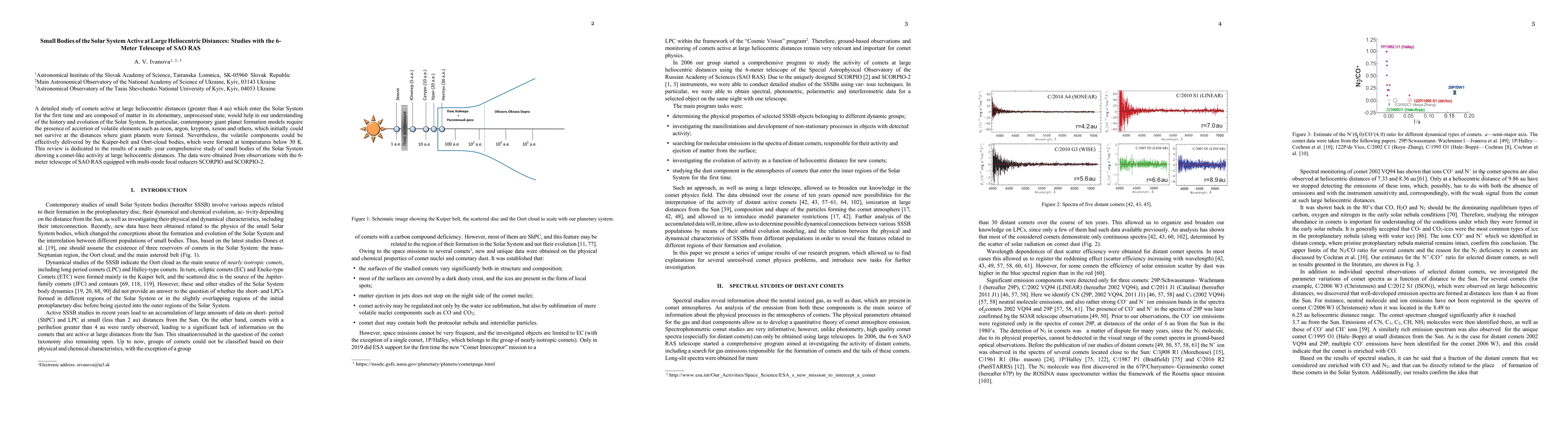 A detailed study of comets active at large heliocentric distances (greater than 4 au) which enter the Solar System for the first time and are composed of matter in its elementary, unprocessed state, would help in our understanding of the history and evolution of the Solar System. In particular, contemporary giant planet formation models require the presence of accretion of volatile elements such as neon, argon, krypton, xenon and others, which initially could not survive at the distances where giant planets were formed. Nevertheless, the volatile components could be effectively delivered by the Kuiper-belt and Oort-cloud bodies, which were formed at temperatures below 30 K. This review is dedicated to the results of a multi-year comprehensive study of small bodies of the Solar System showing a comet-like activity at large heliocentric distances. The data were obtained from observations with the 6-meter telescope of SAO RAS equipped with multi-mode focal reducers SCORPIO and SCORPIO-2.