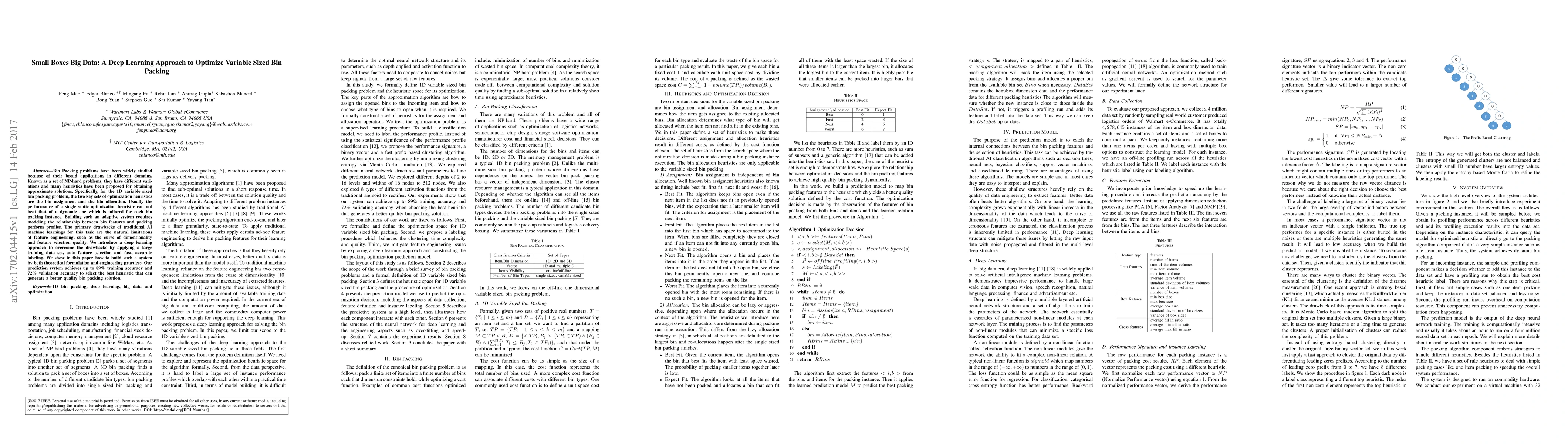 Researchers developed a deep learning approach to optimize variable-sized bin packing, achieving up to 89% training accuracy and 72% validation accuracy in selecting the best heuristic for better solutions.